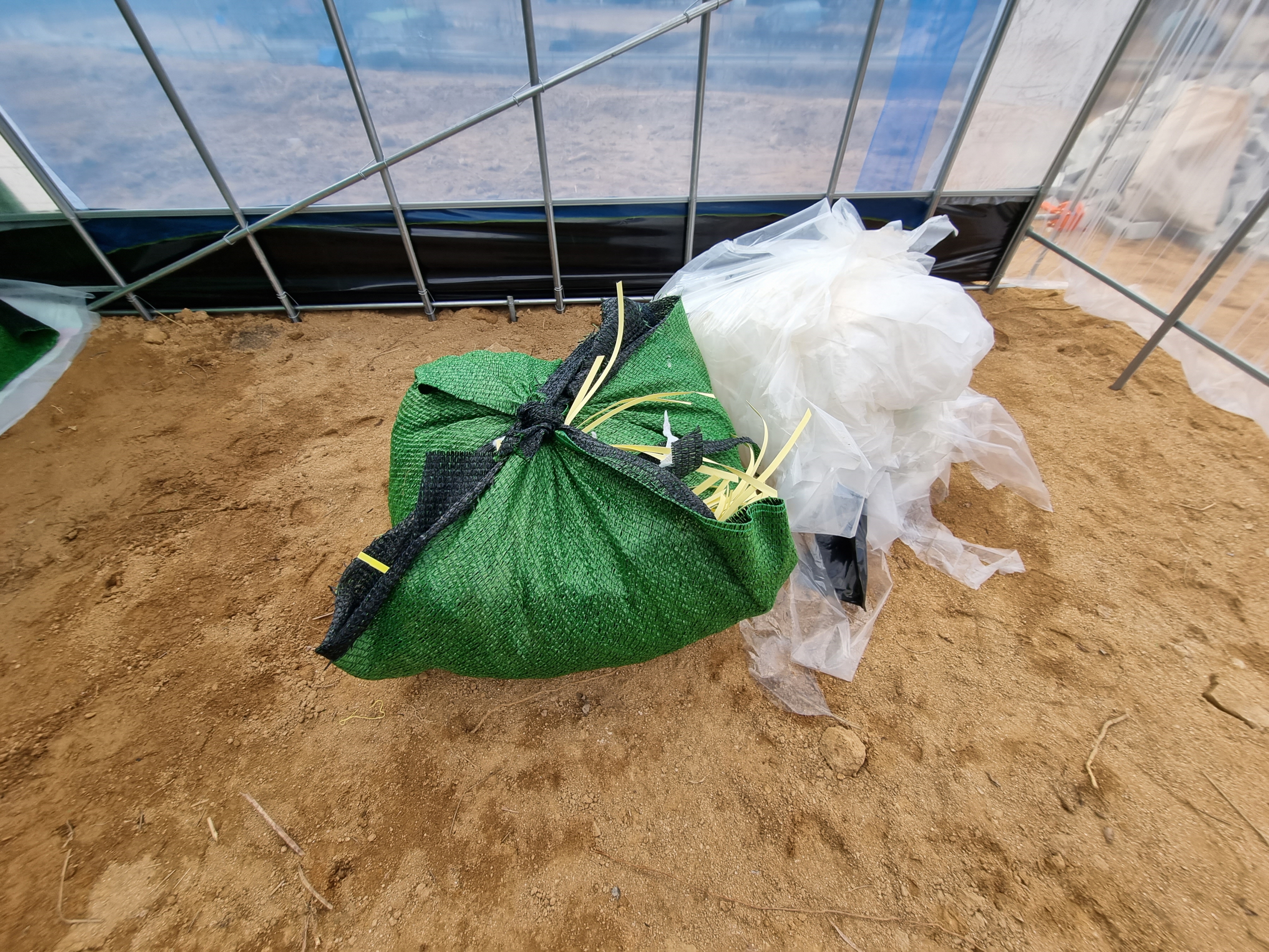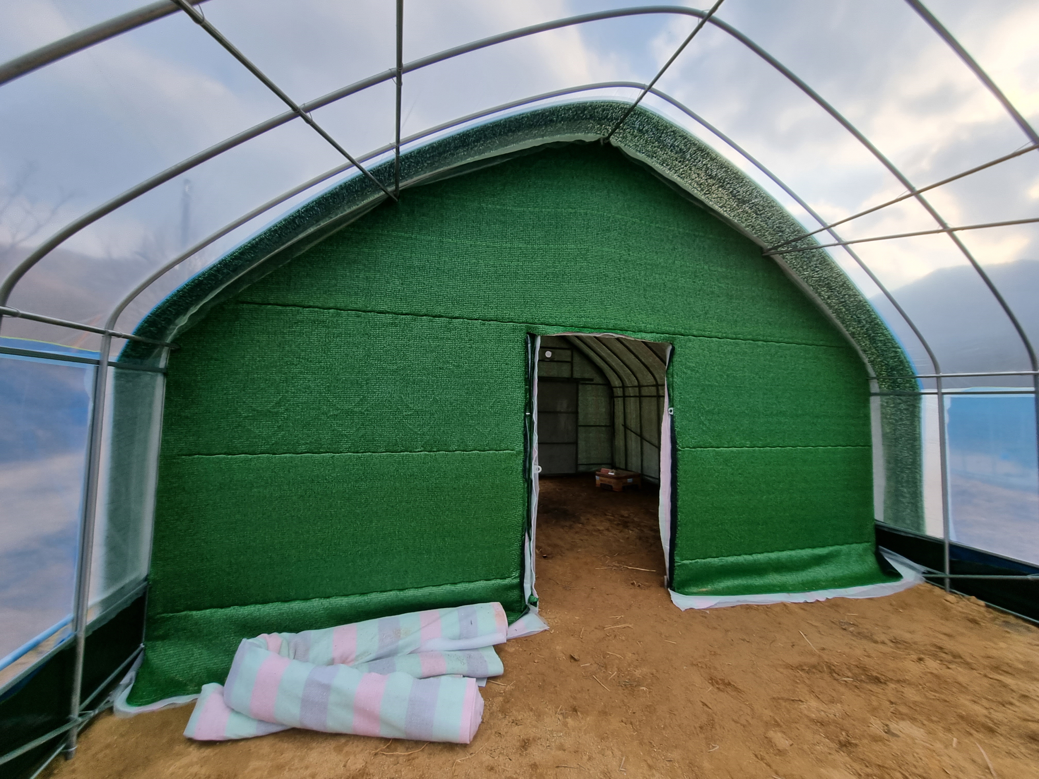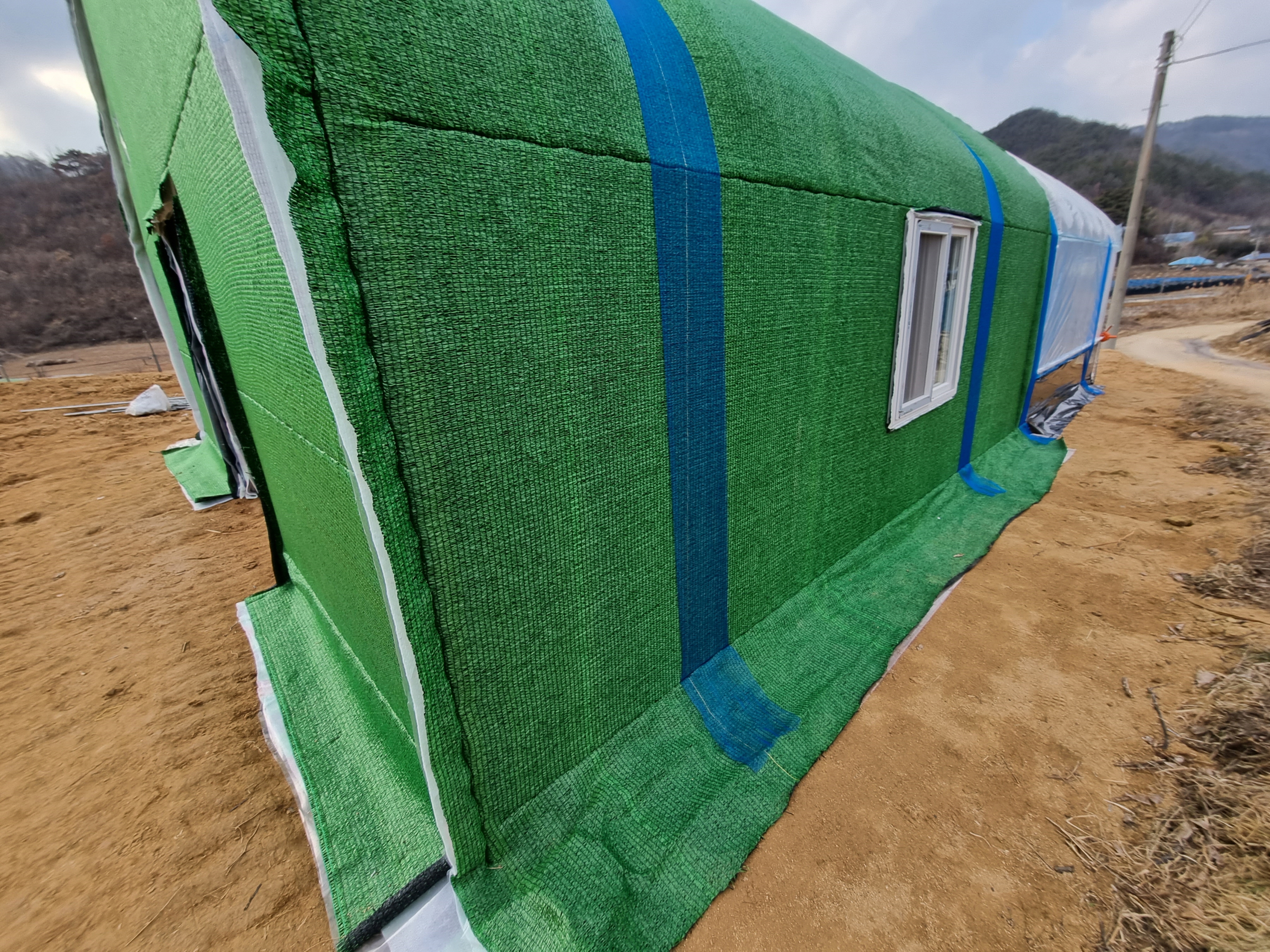 농막쪽에는 장수필름 2겹, 보온덮개, 차광막 4겹