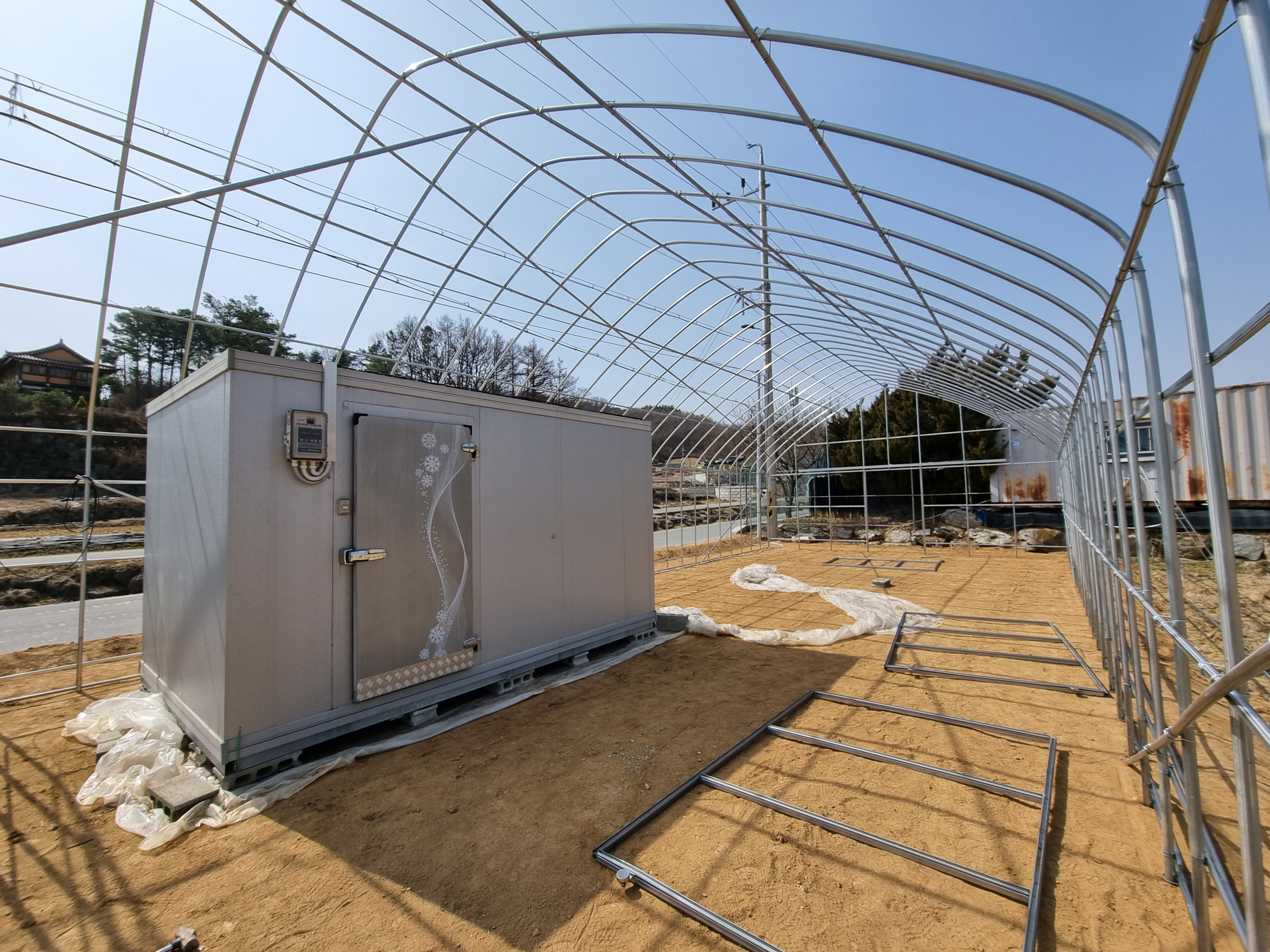 높이 2.4미터의 저온저장고를 하우스 내부에