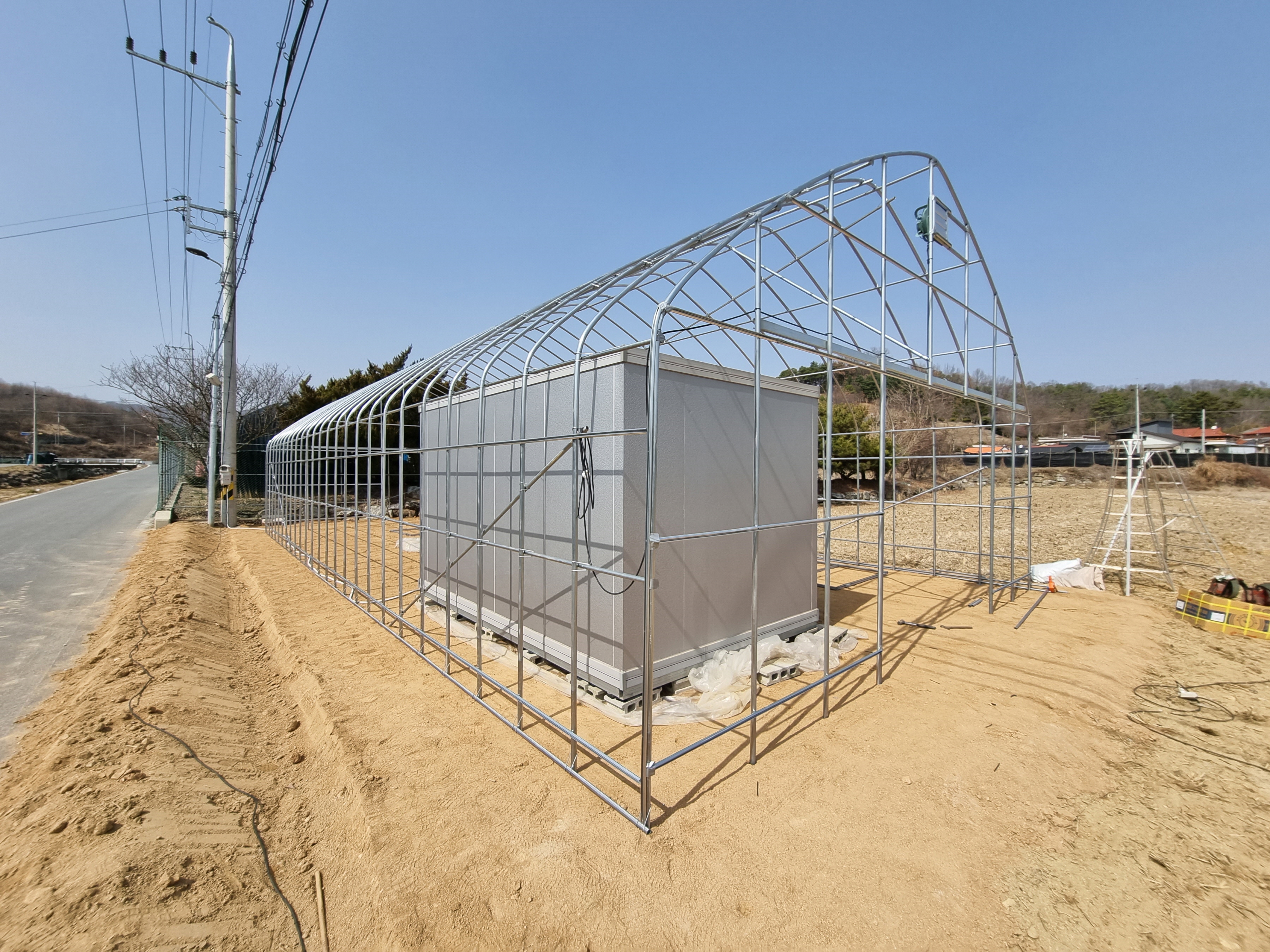 넣고 외부에 비닐하우스를 씌워주는 작업입니다.