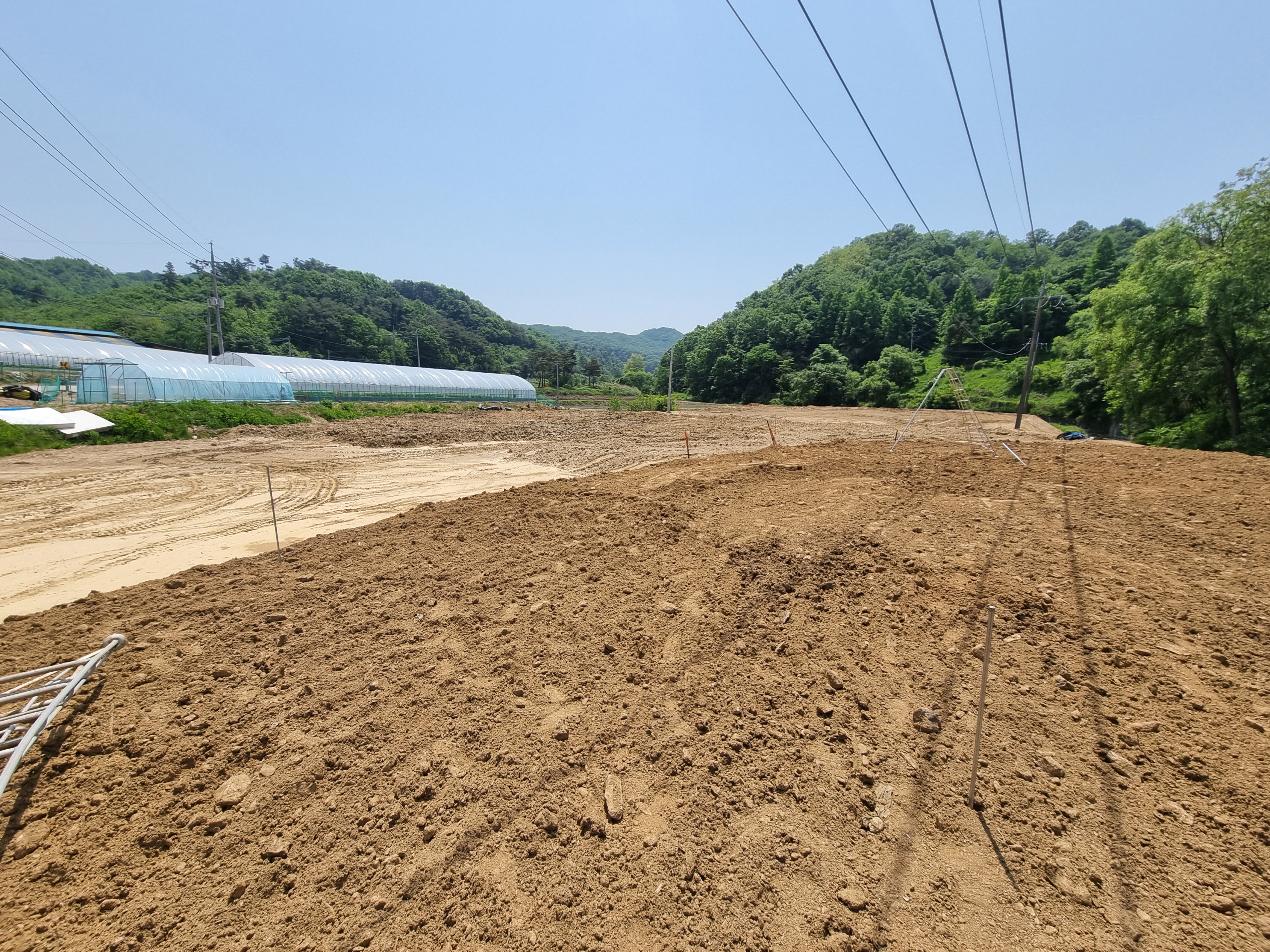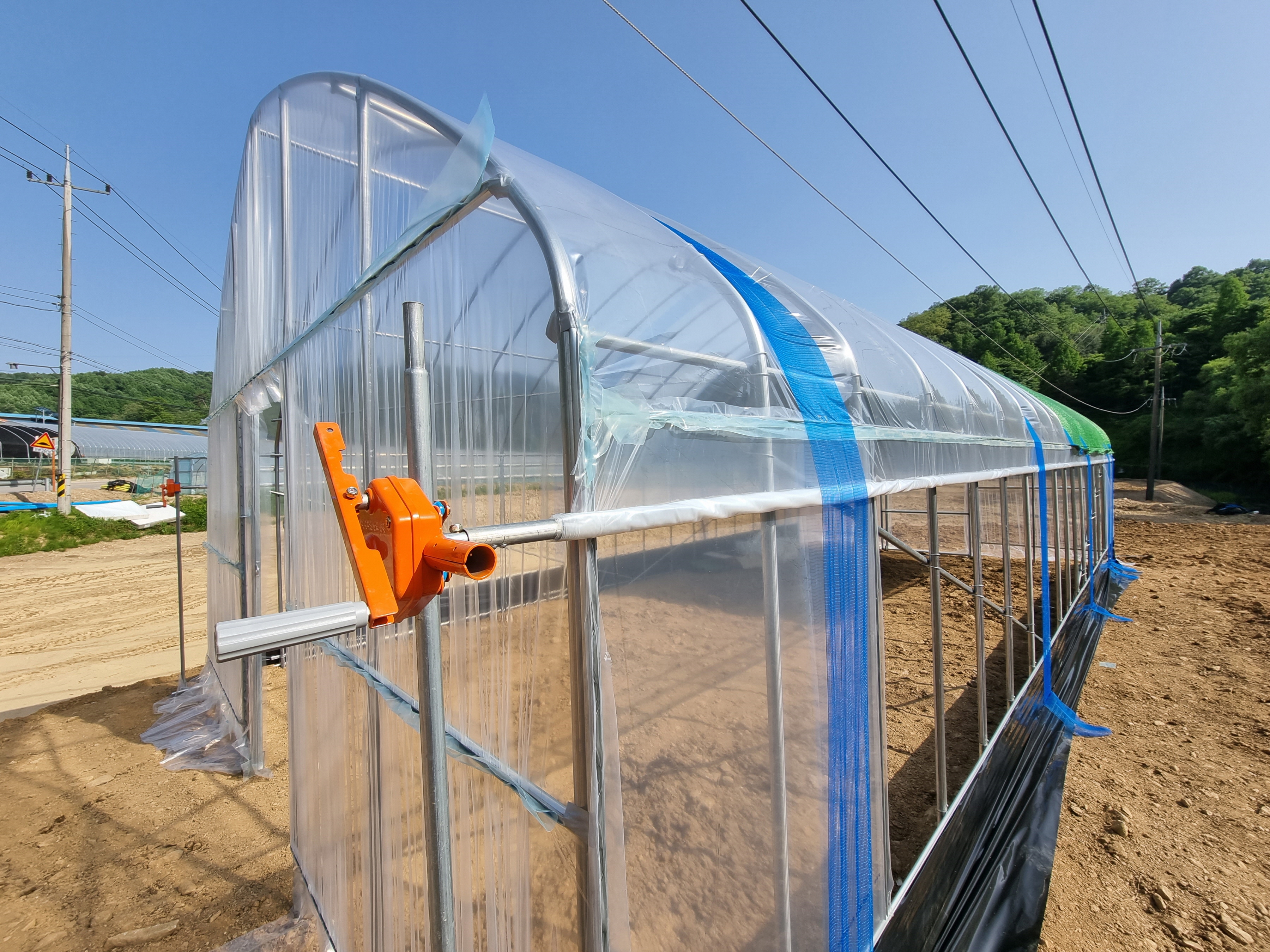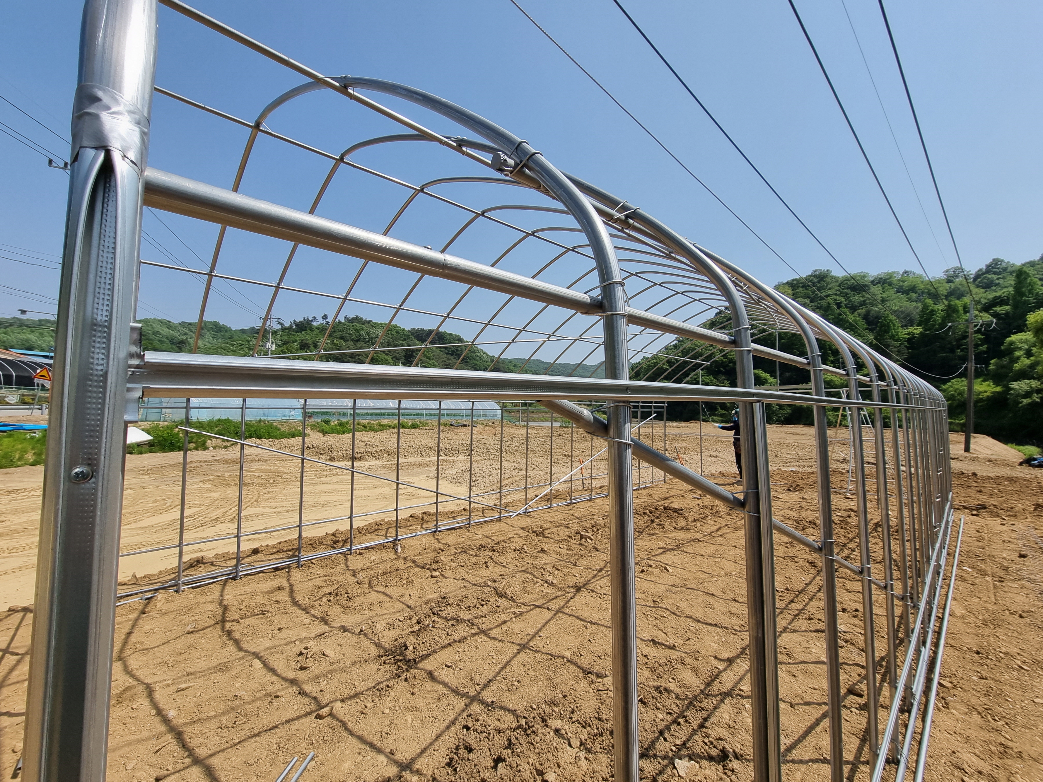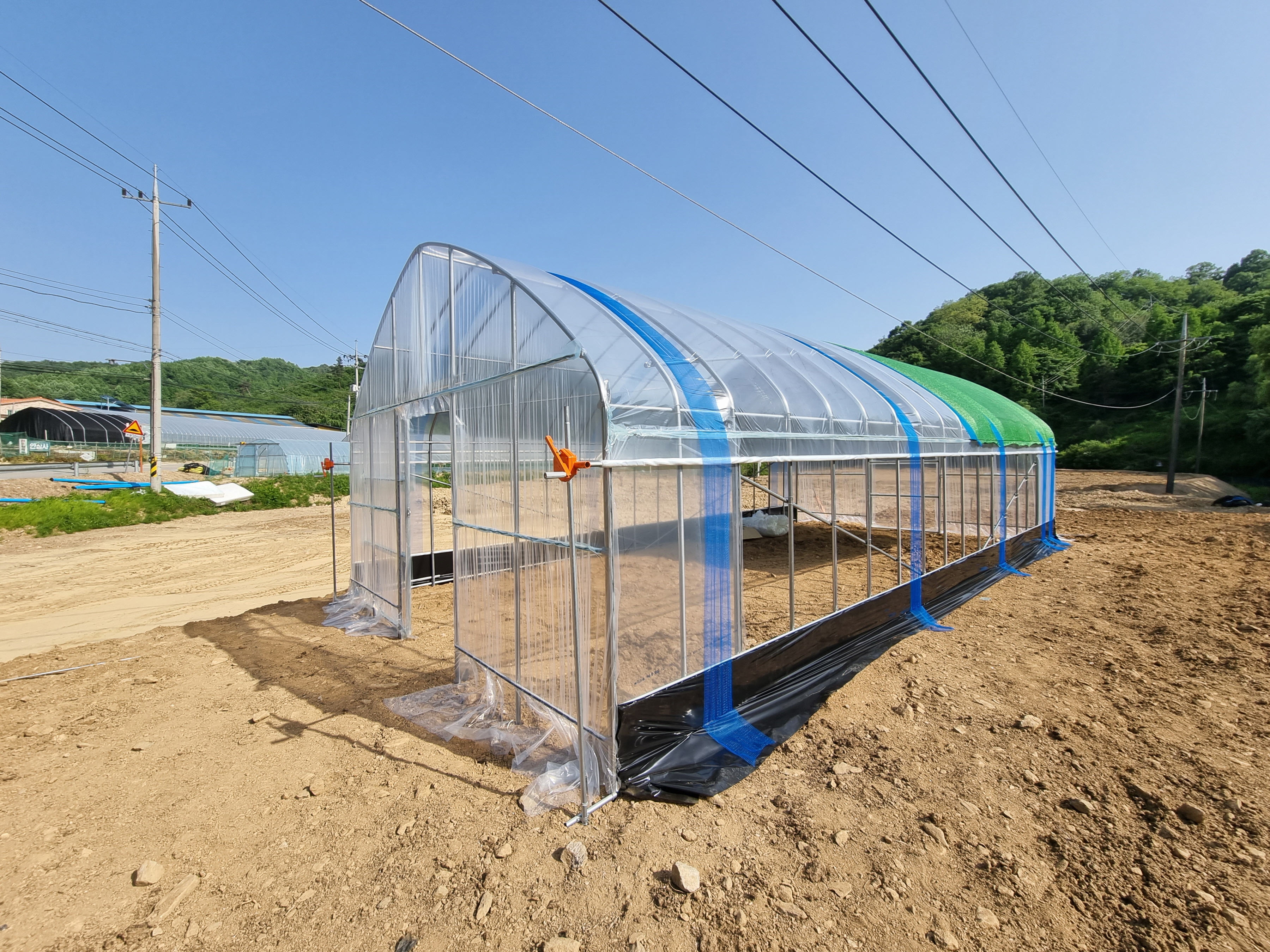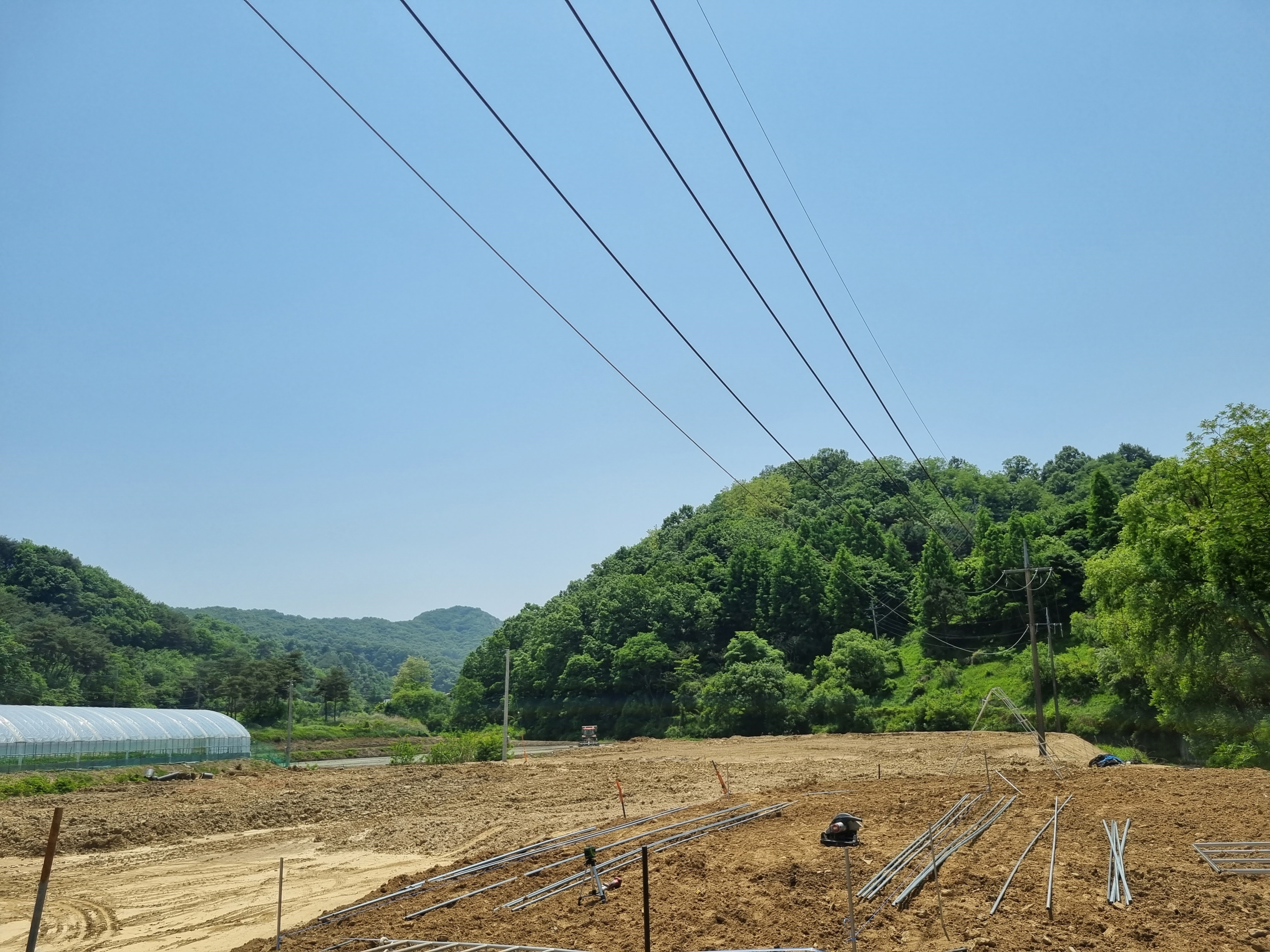 하우스 설치장소 위에 전선이 있었지만