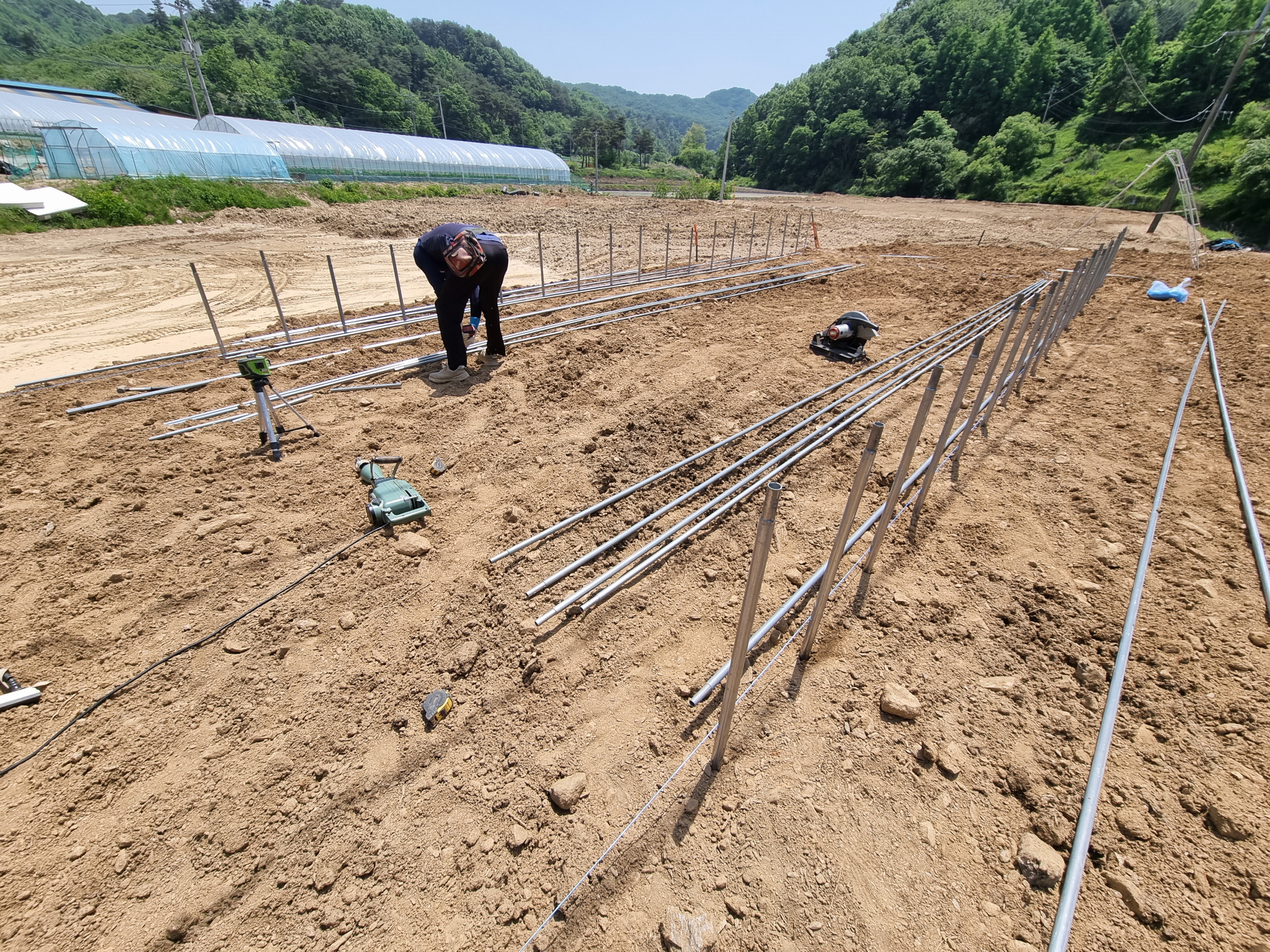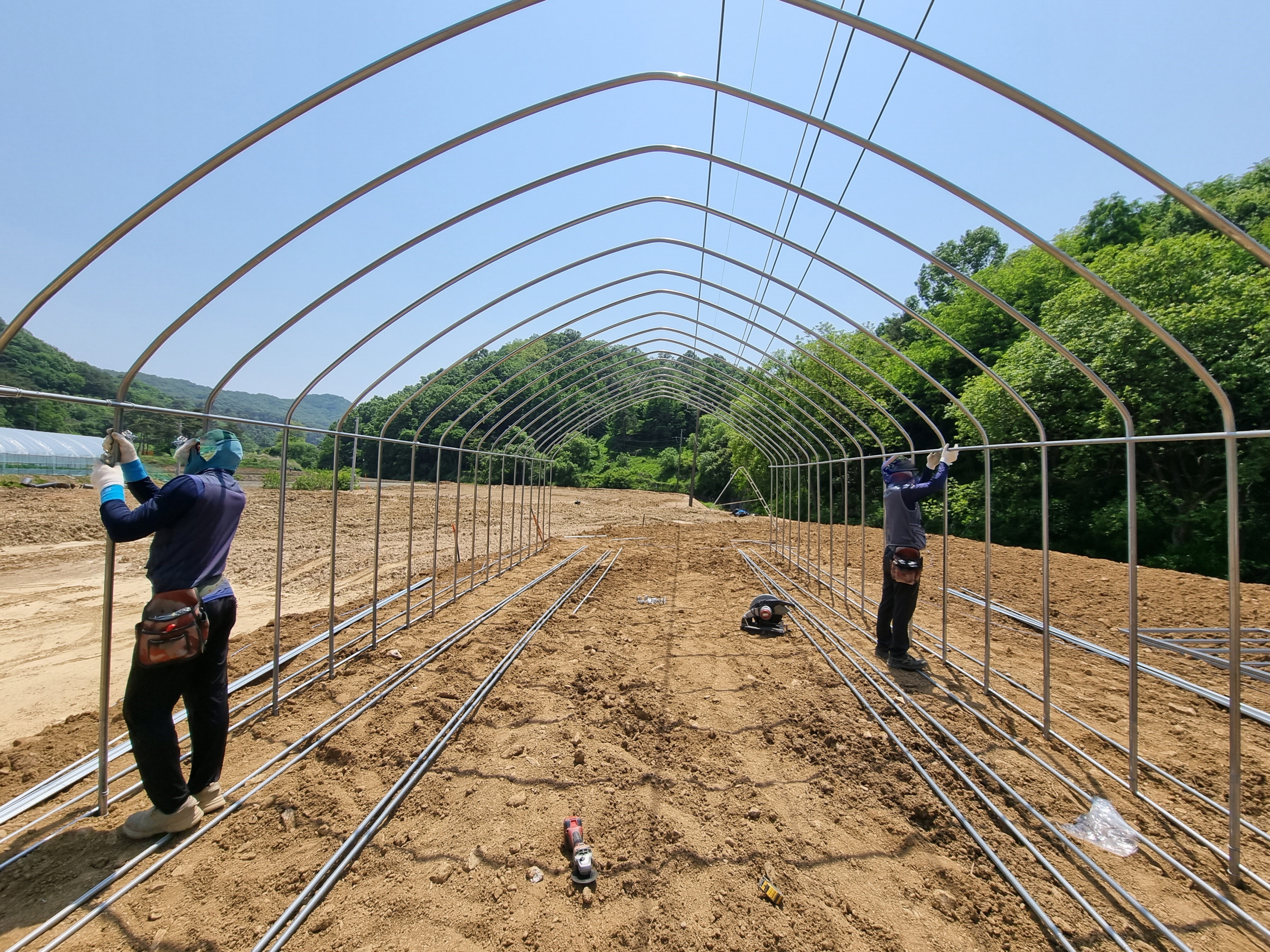 비닐하우스 설치현장 모습입니다.