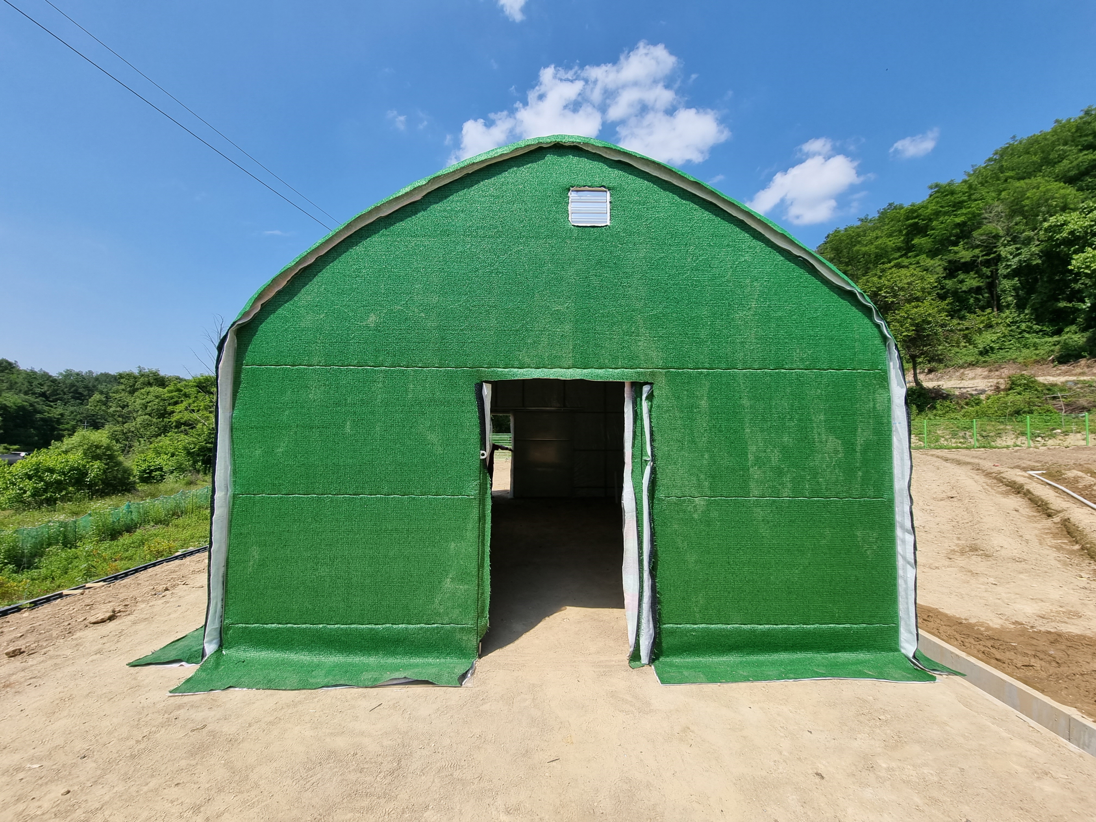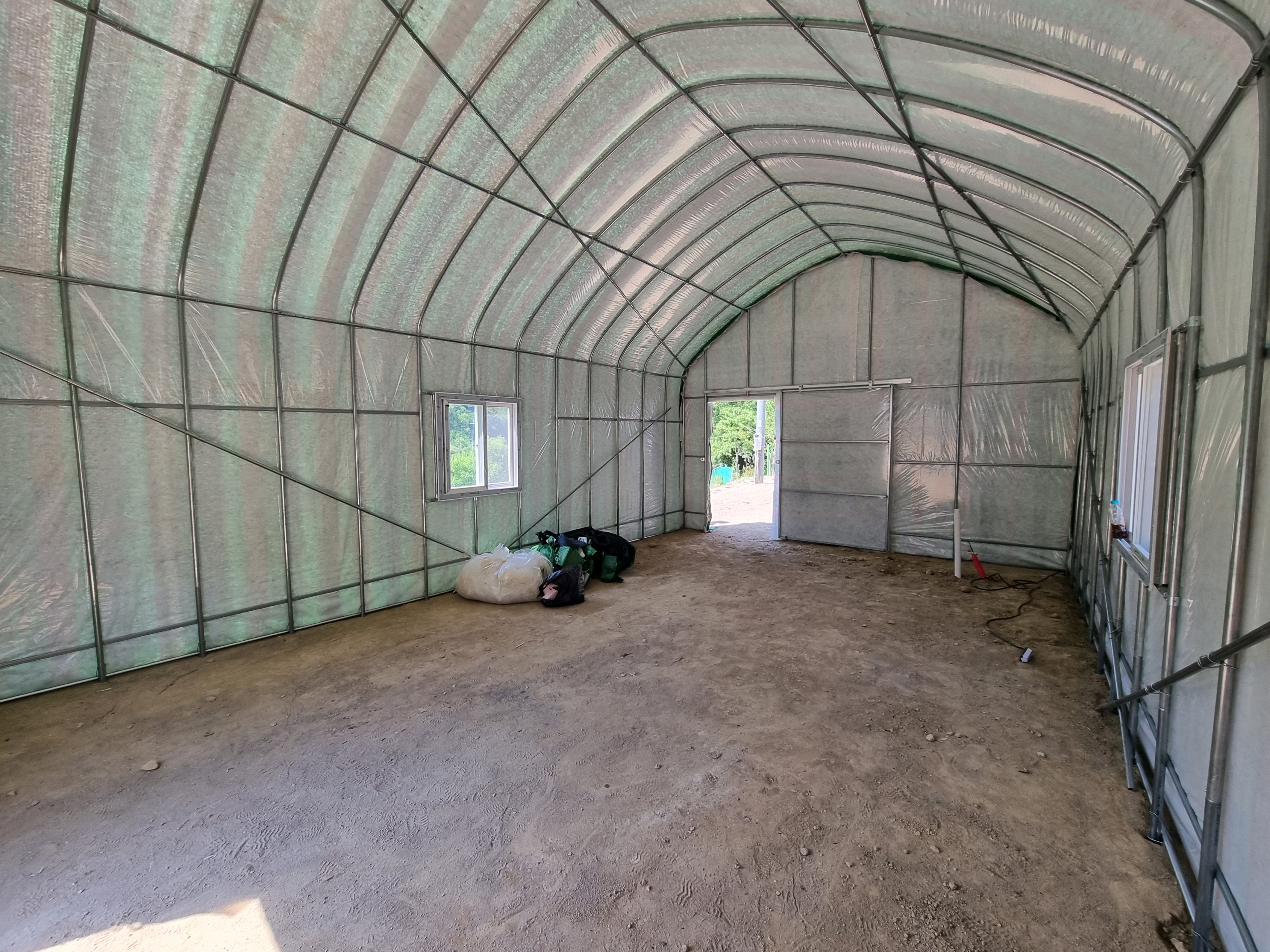 - 하우스 출입문 앞 1개, 뒤 1개 미닫이문