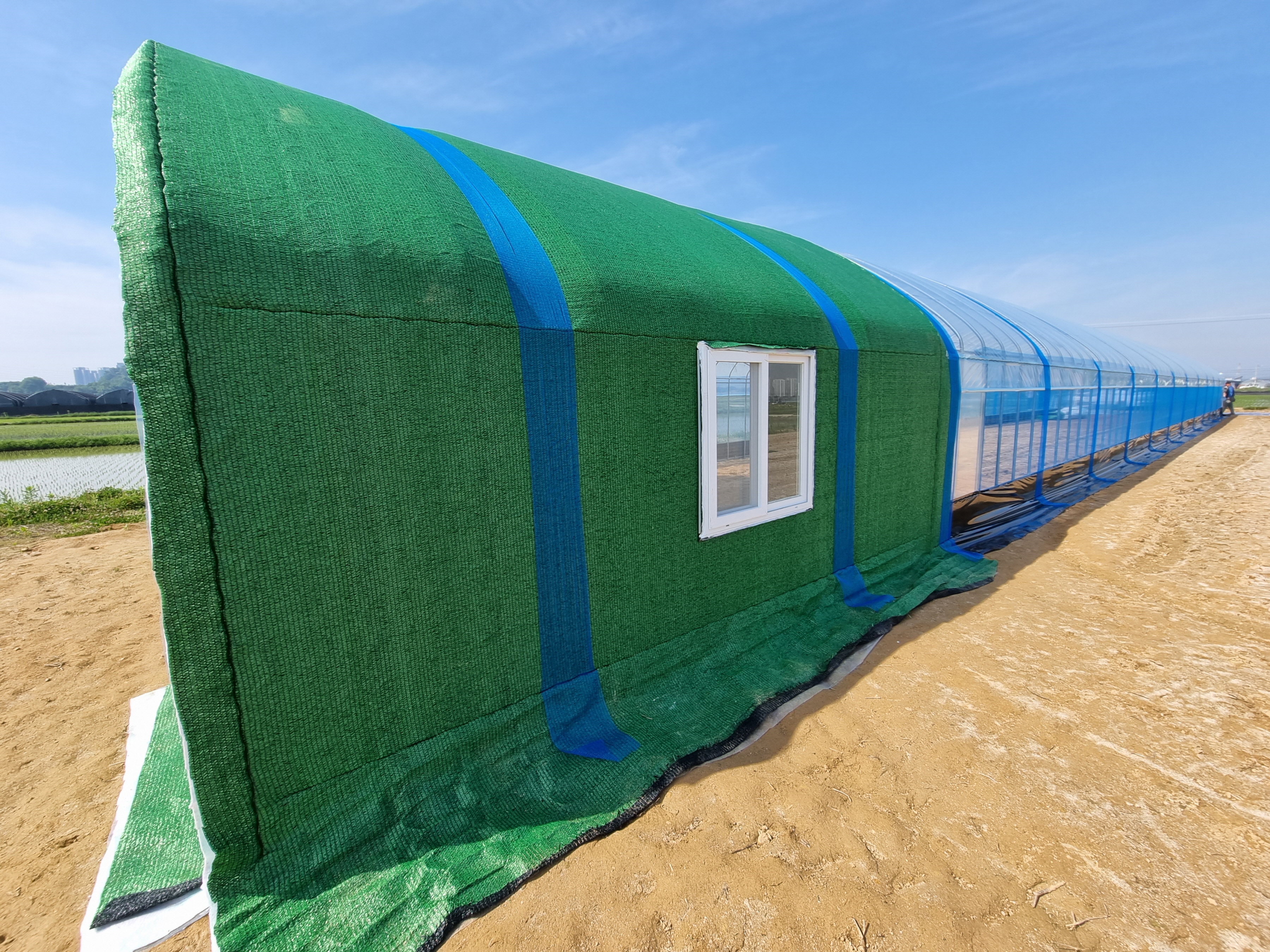 비닐 + 보온덮개 + 비닐 + 차광막으로