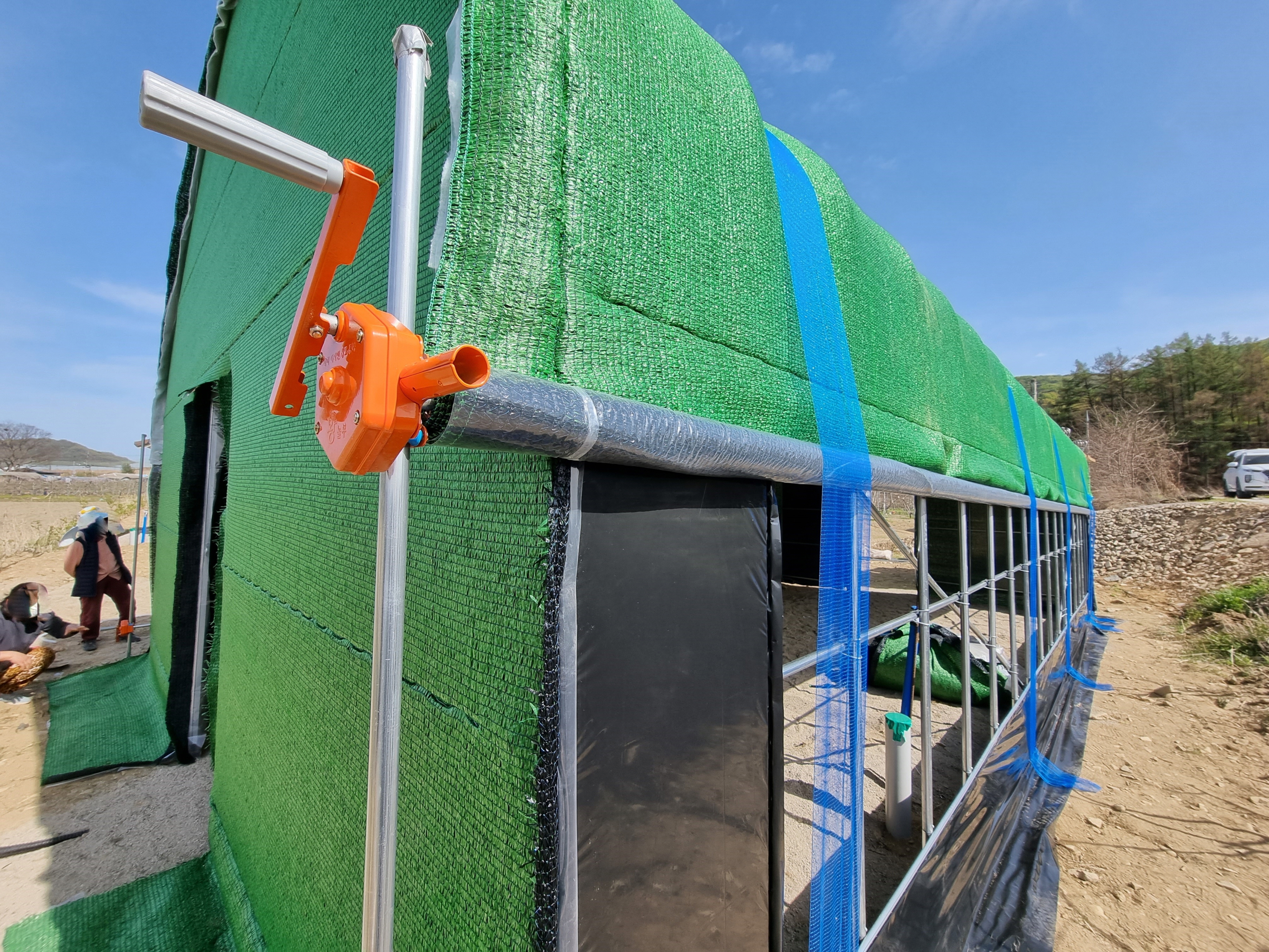 지붕에는 비닐+보온덮개+비닐+차광막 4겹이며
