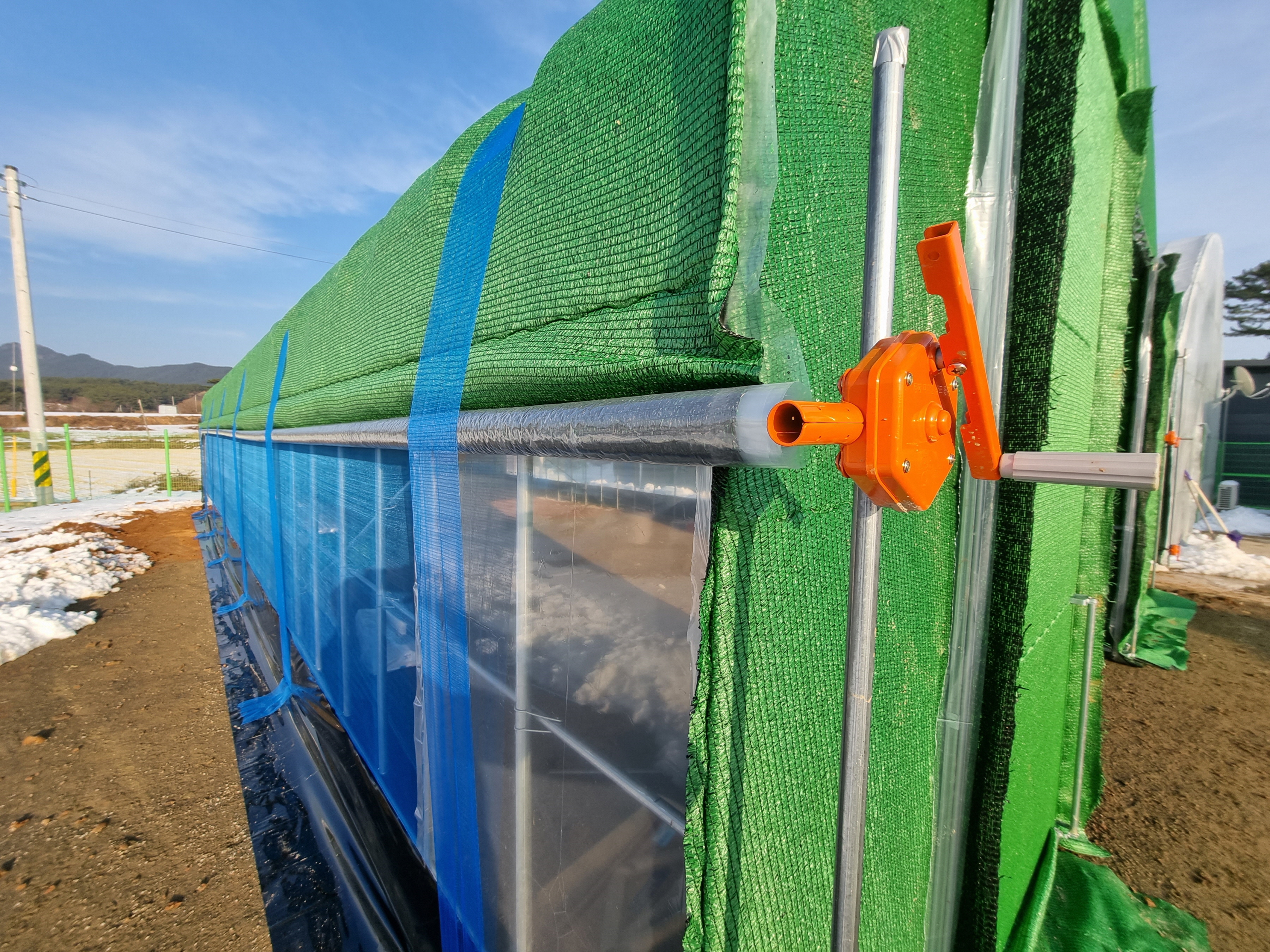비닐과 차광막 2겹을 동시에 감아올려 사용하게 됩니다.