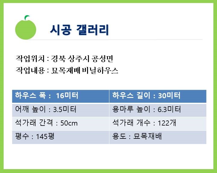 비닐하우스 설치현장은 경북 상주시 입니다.