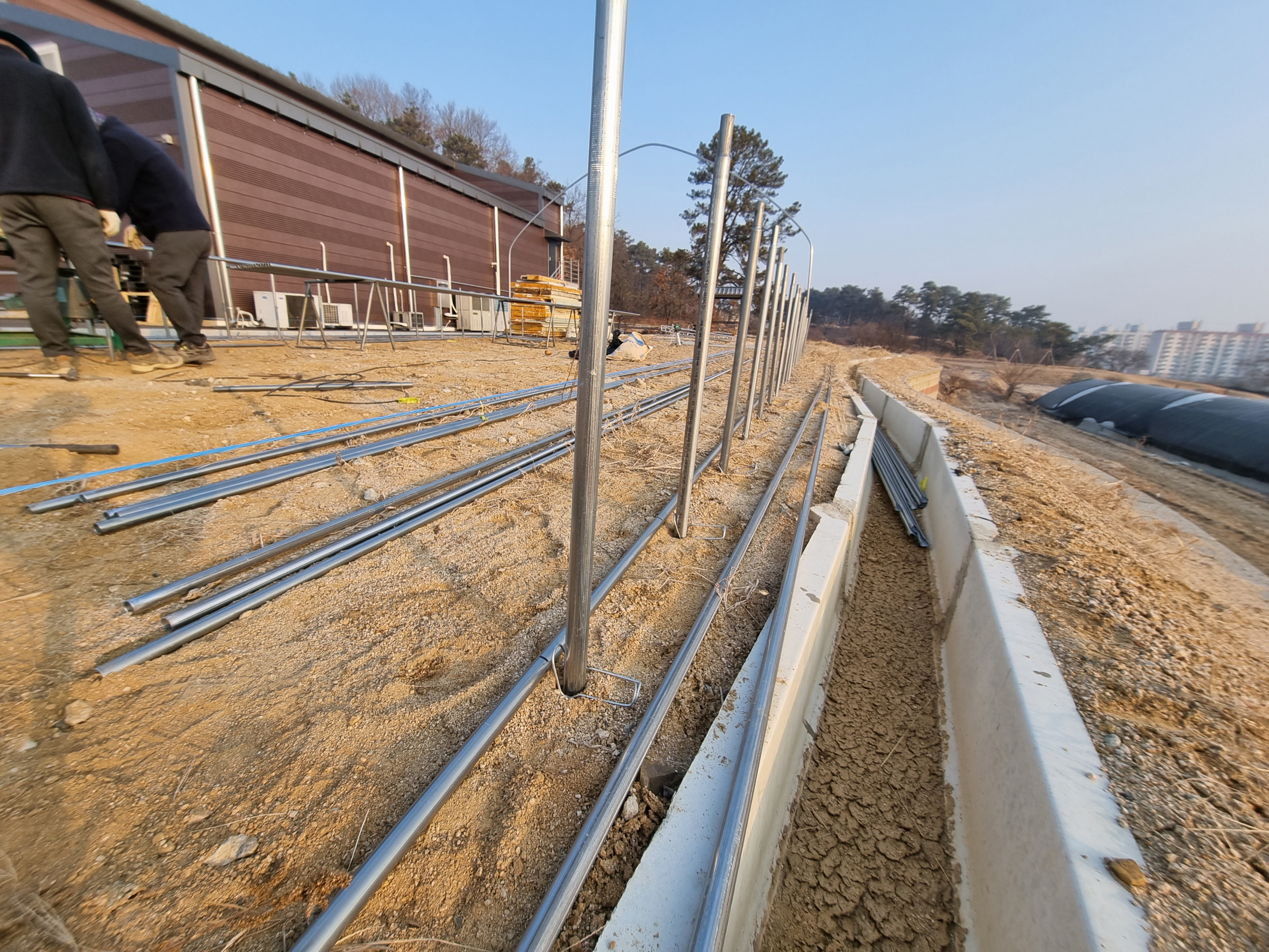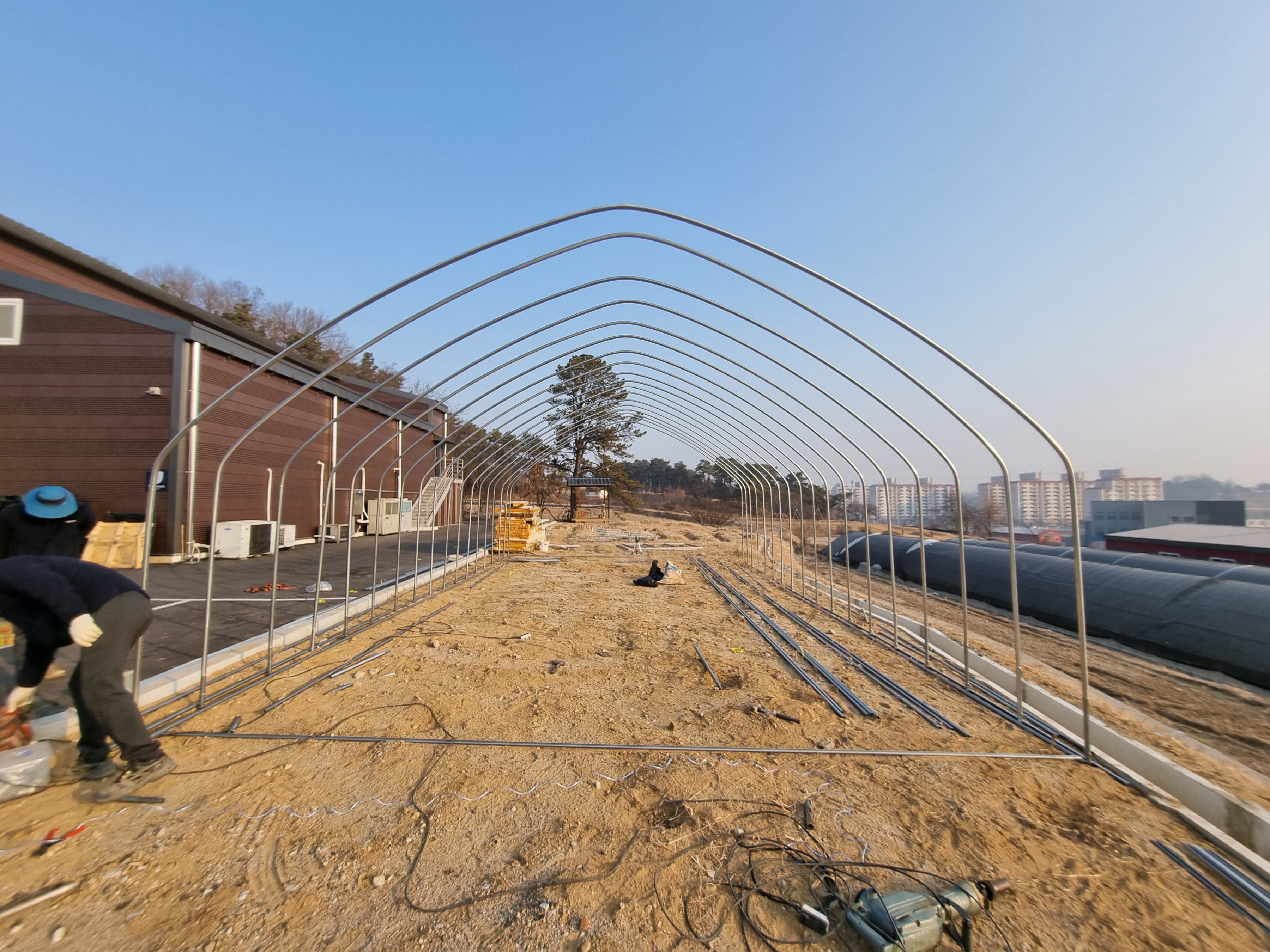 인발대 위에 석가래 파이프가 설치됩니다.