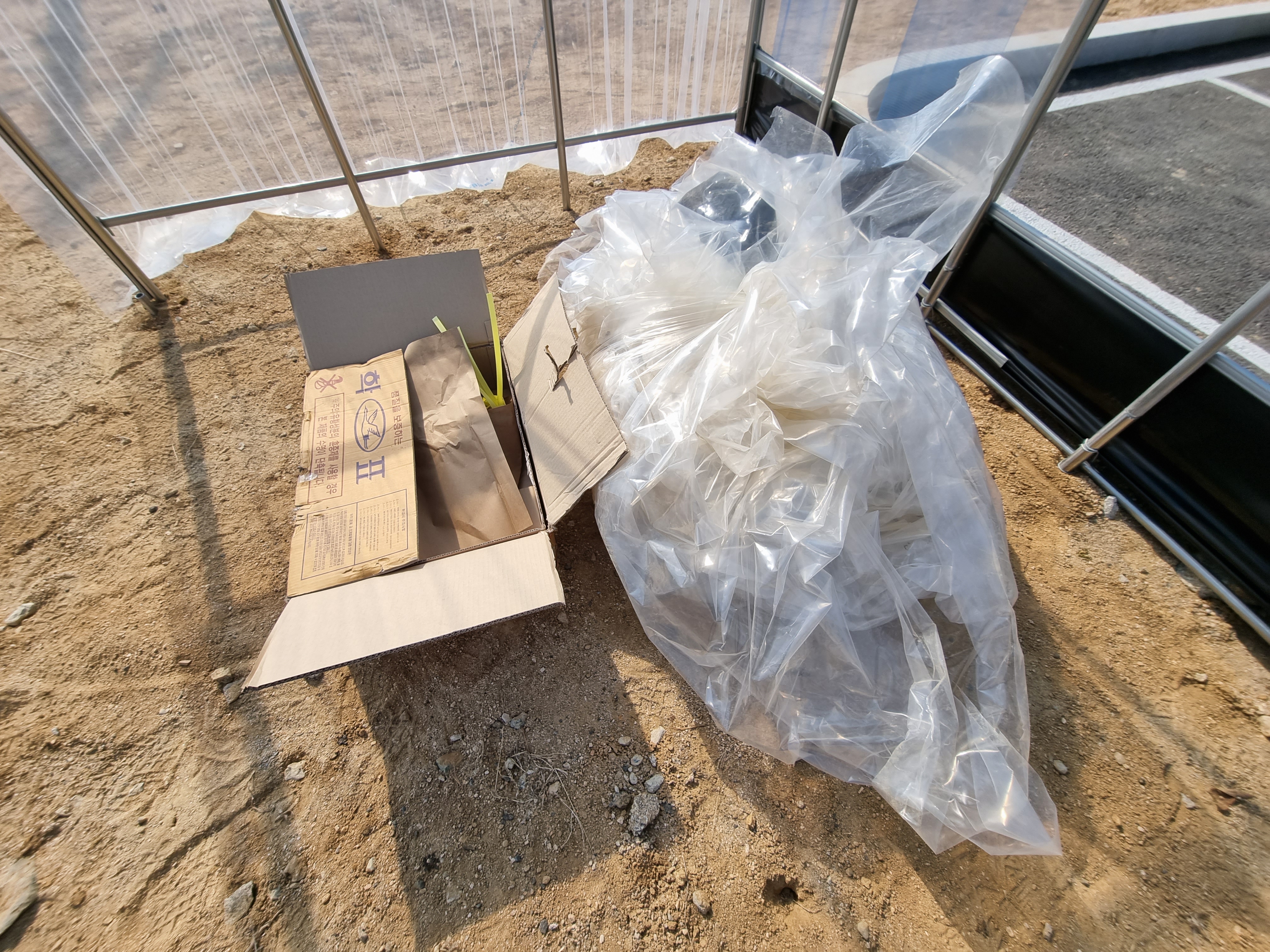 바람막이 비닐을 4면 모서리에 설치해주었습니다.