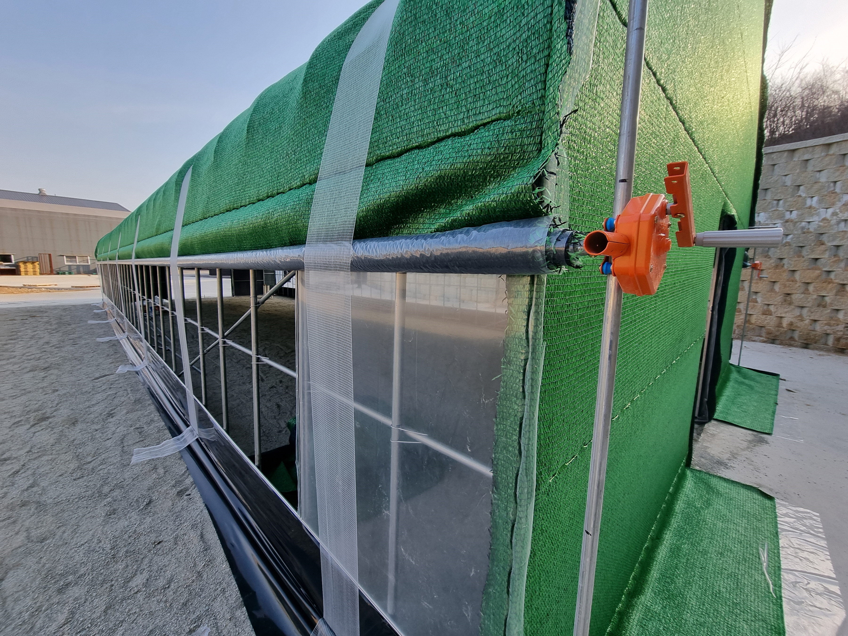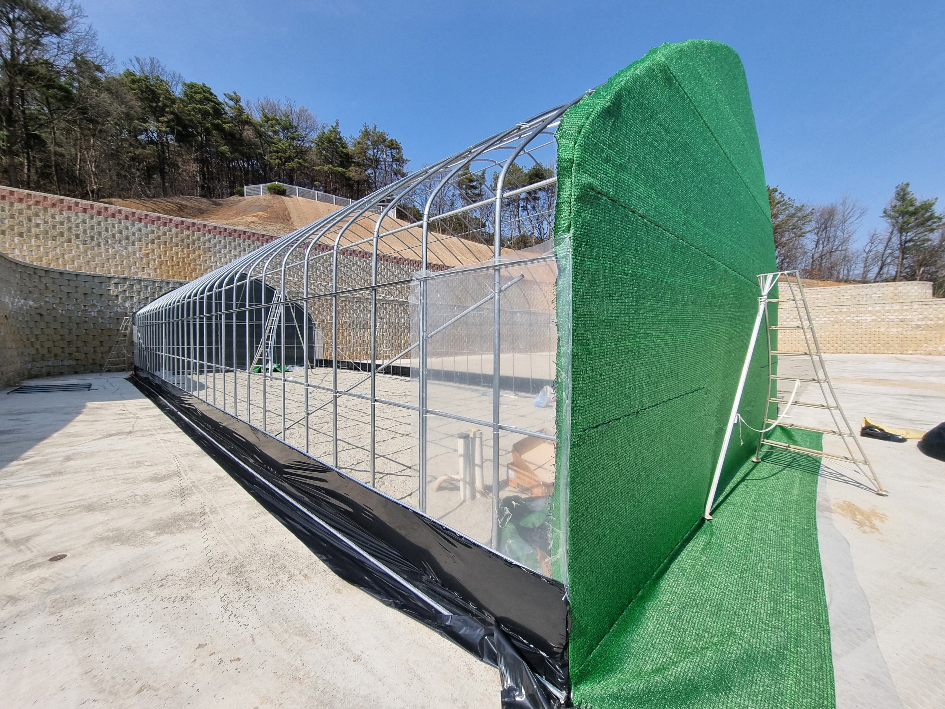 하단 치마비닐과 바람막이 비닐을 설치해주었습니다.