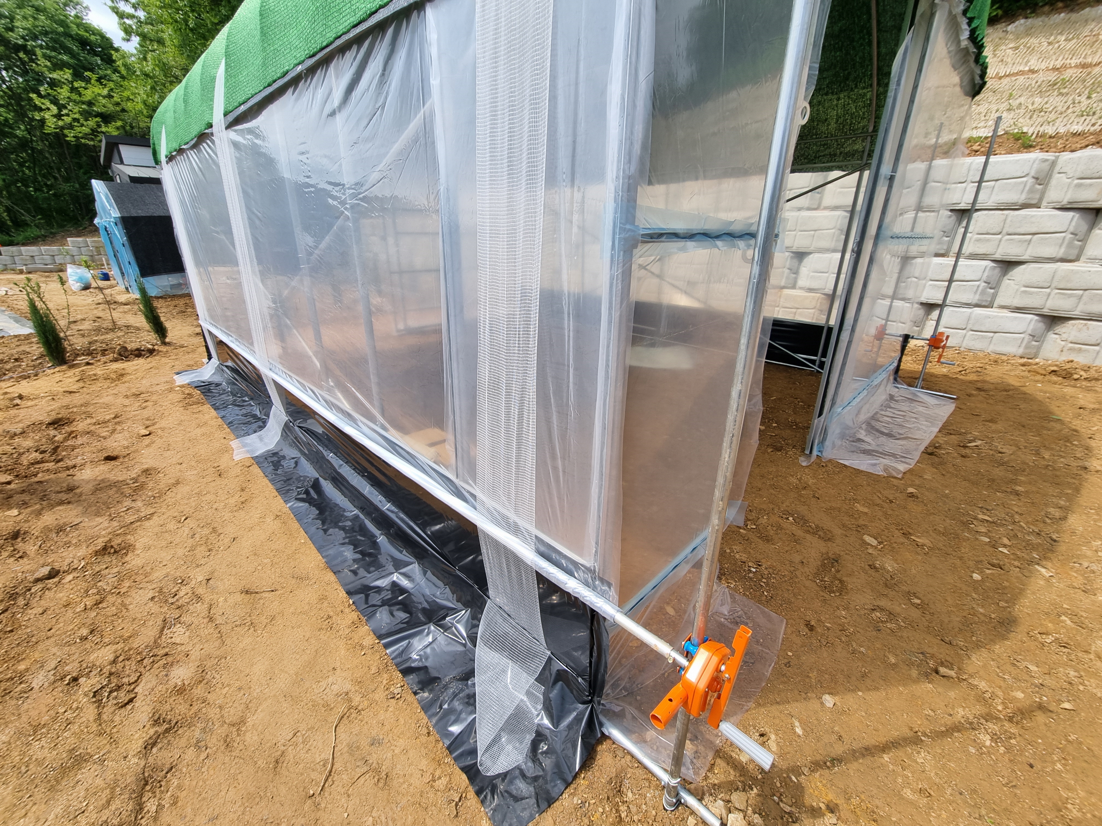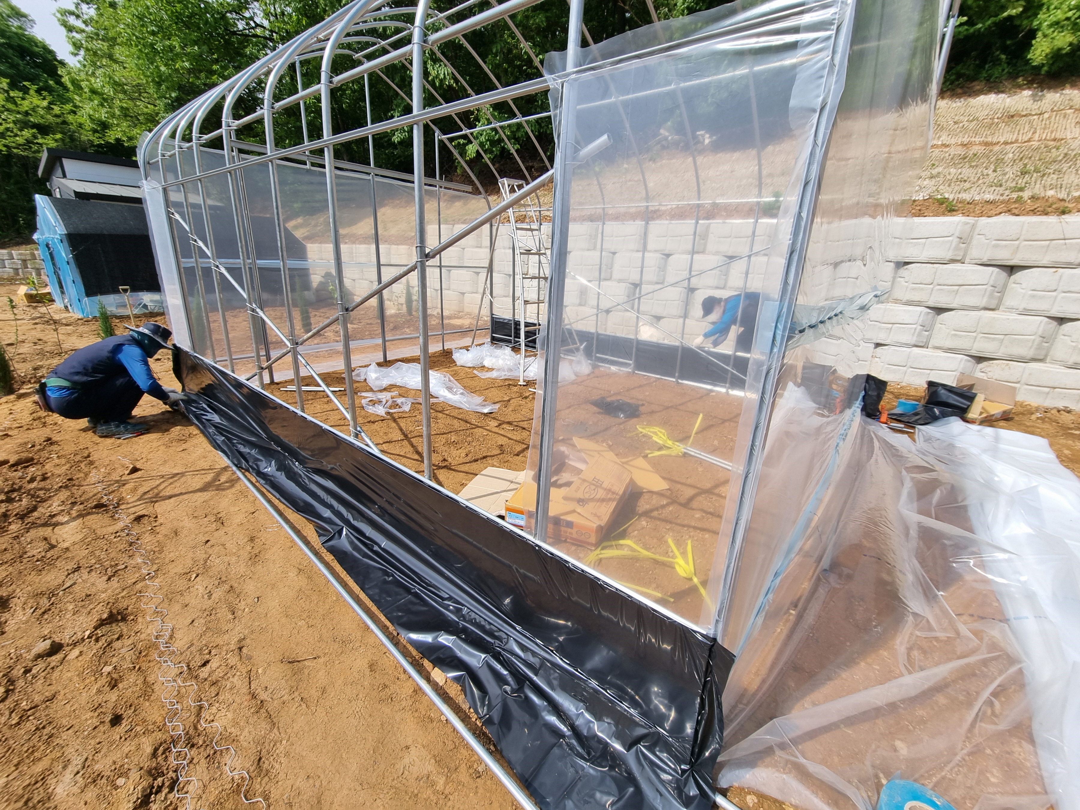 바닥에 검정색 치마비닐과 바람막이 비닐을 설치해주었습니다.