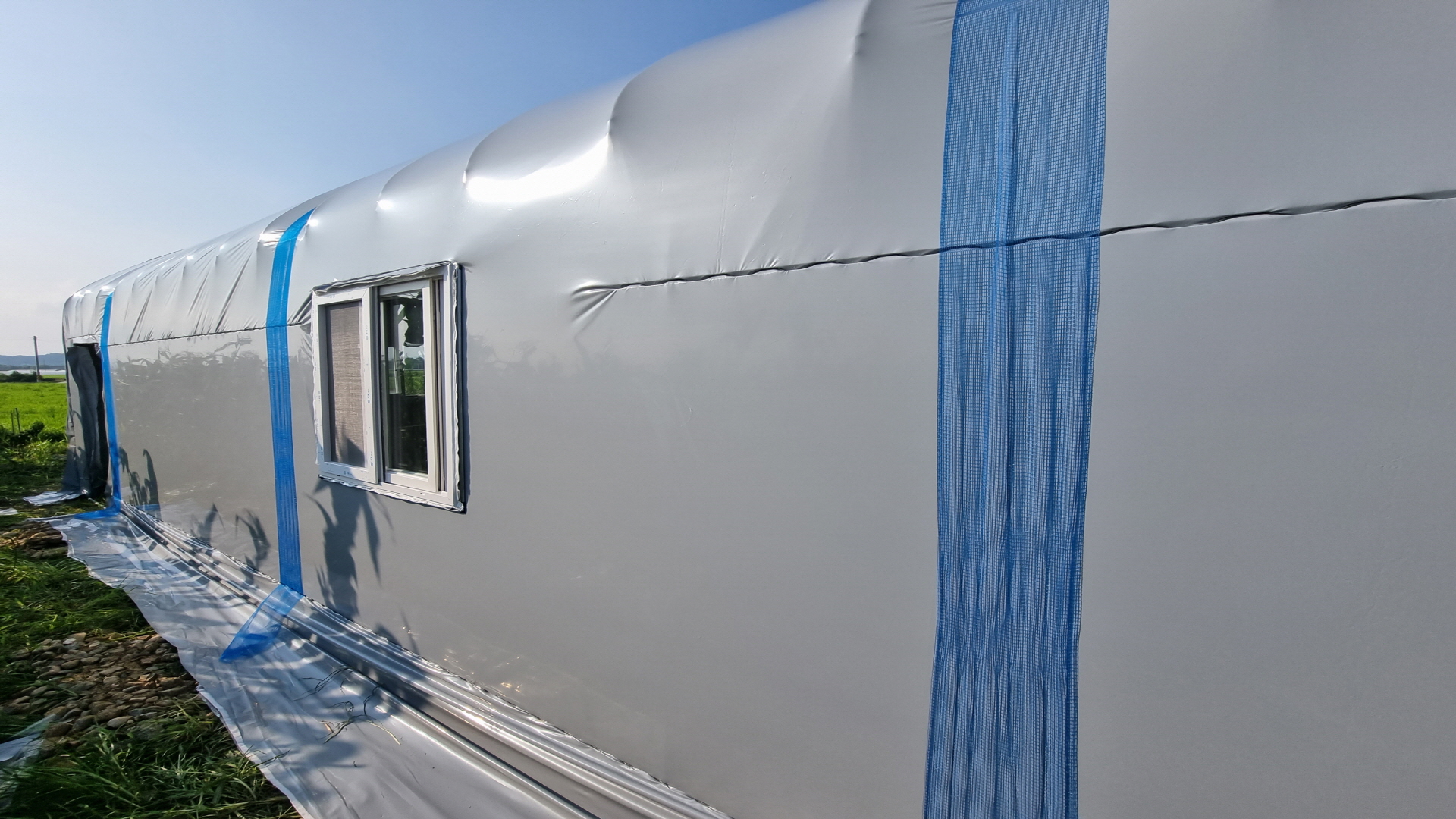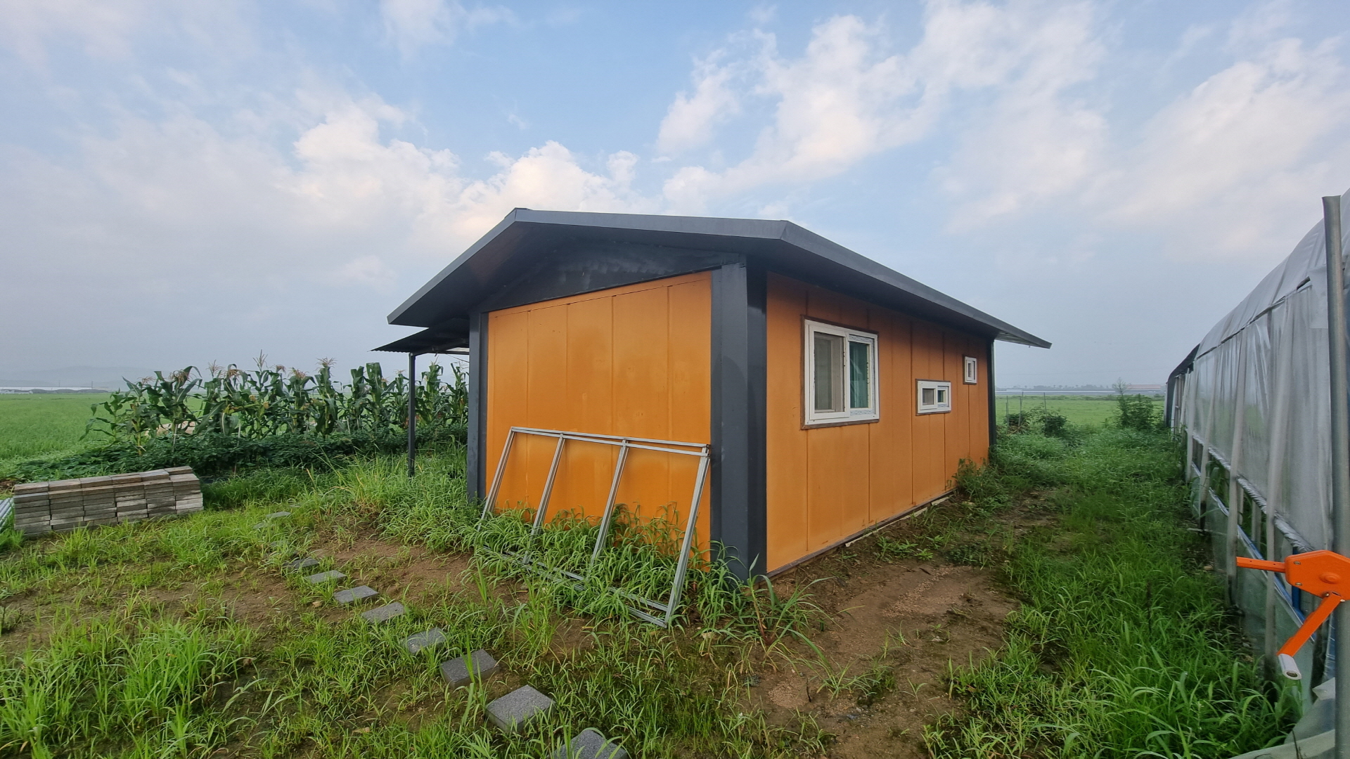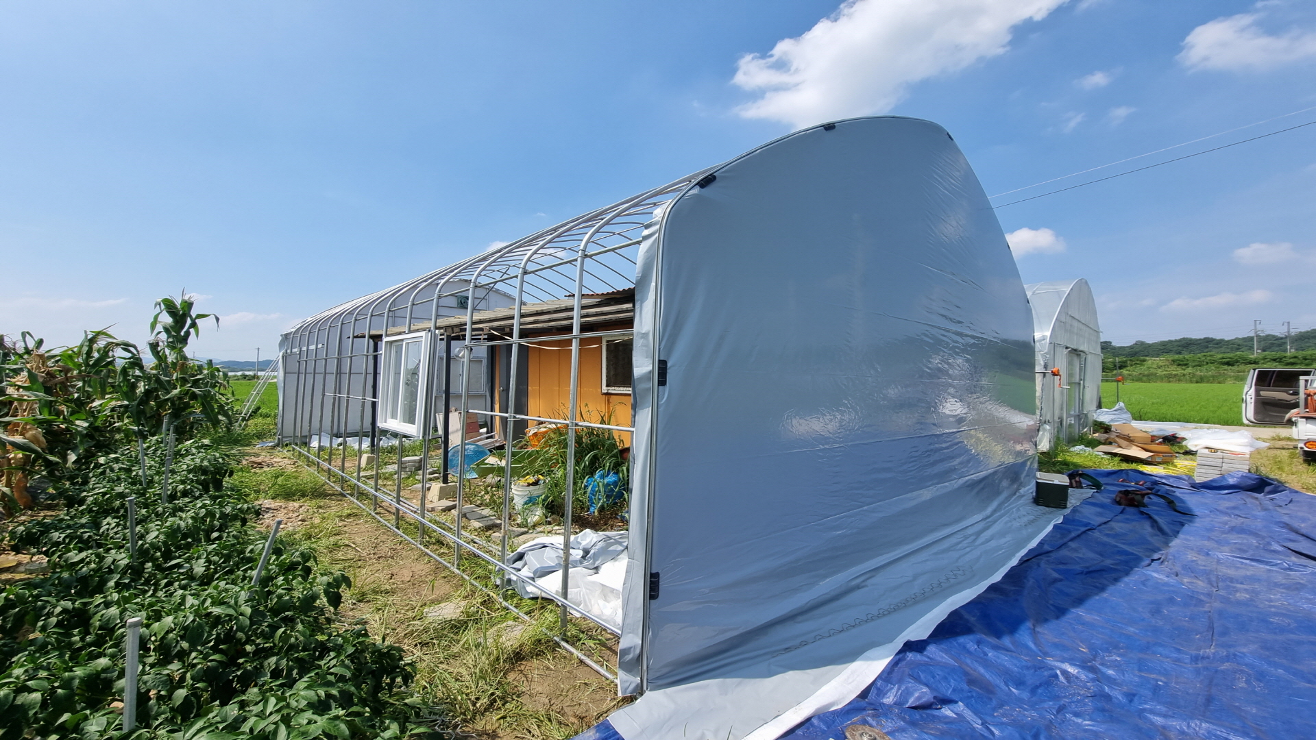 컨테이너 농막 외부에 비닐하우스를 시공하면