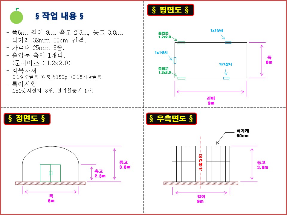 하우스 폭과 길이등을 조절하여 설치해드릴수 있습니다.