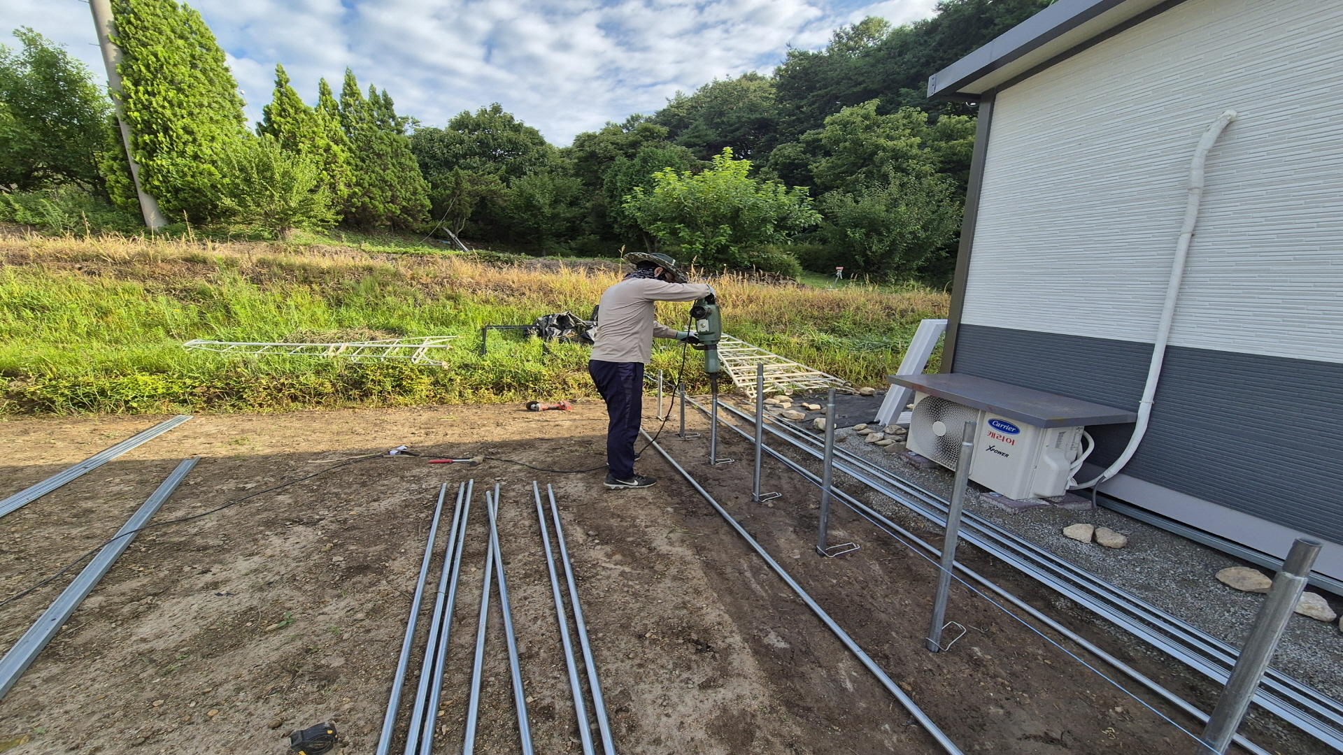 기초공사는 인발대 파이프를 땅속으로 50cm 가량