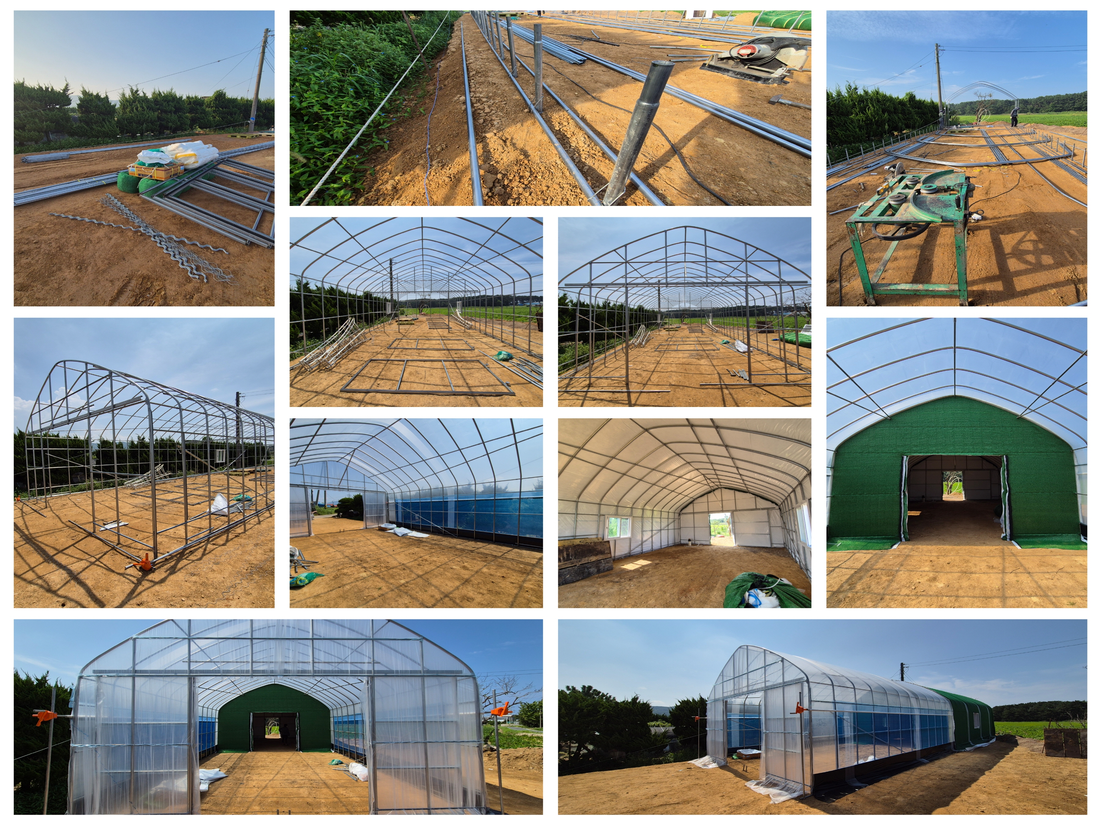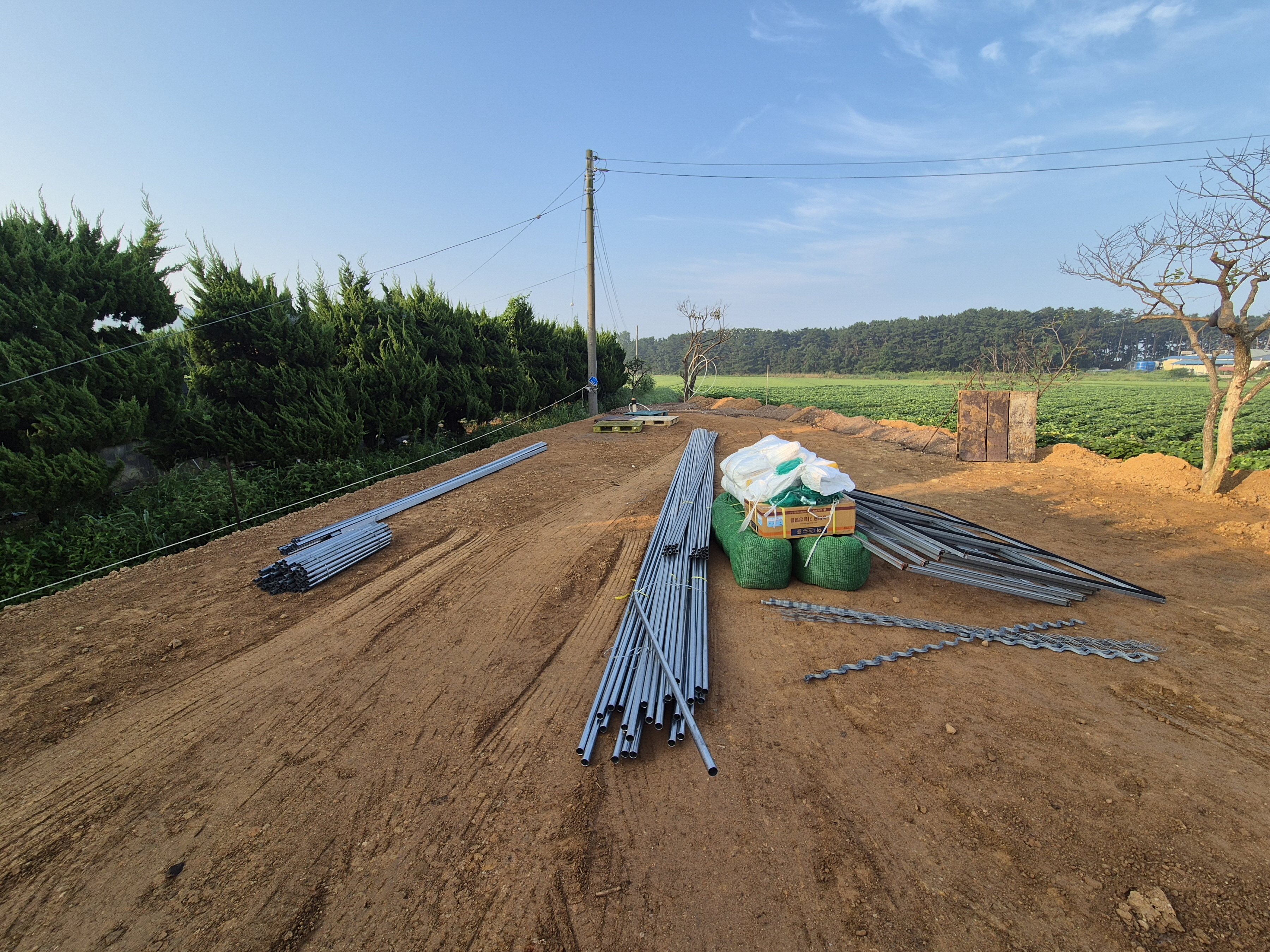 비닐하우스 설치시 현장 경지정리는 직접 해놓으시면 됩니다.