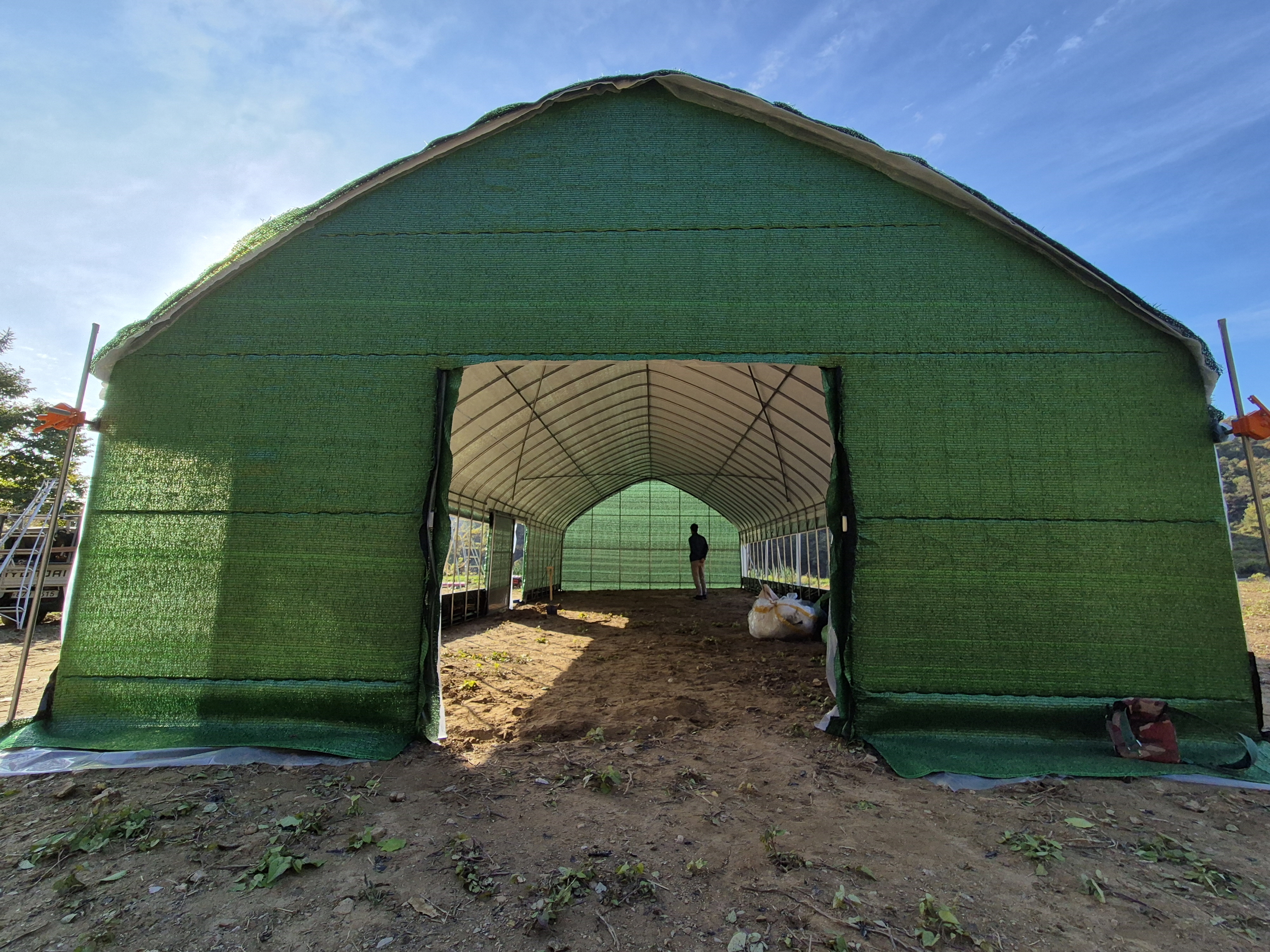 측면은 개폐를 위해 비닐+차광막 2겹의 구성입니다.