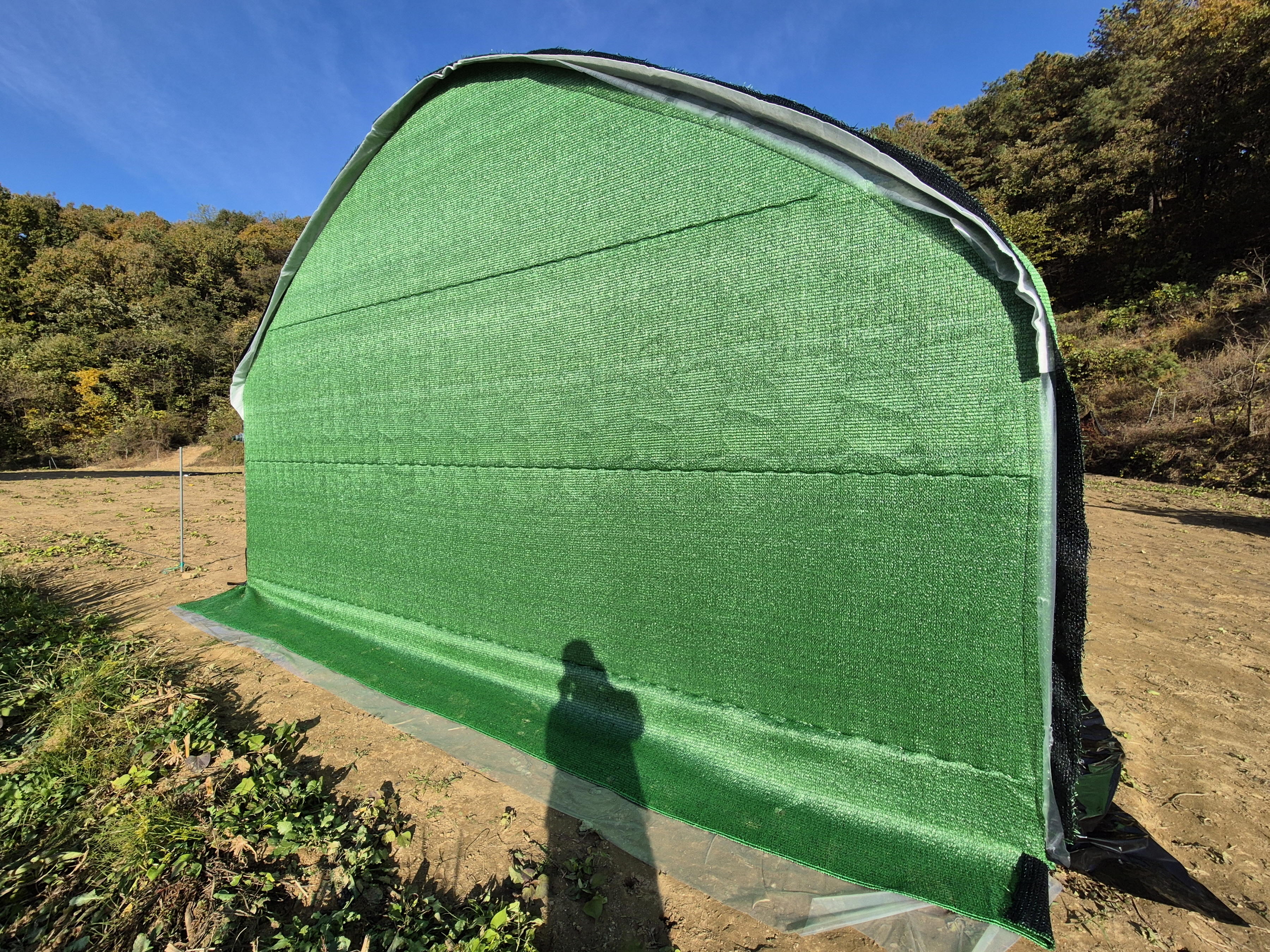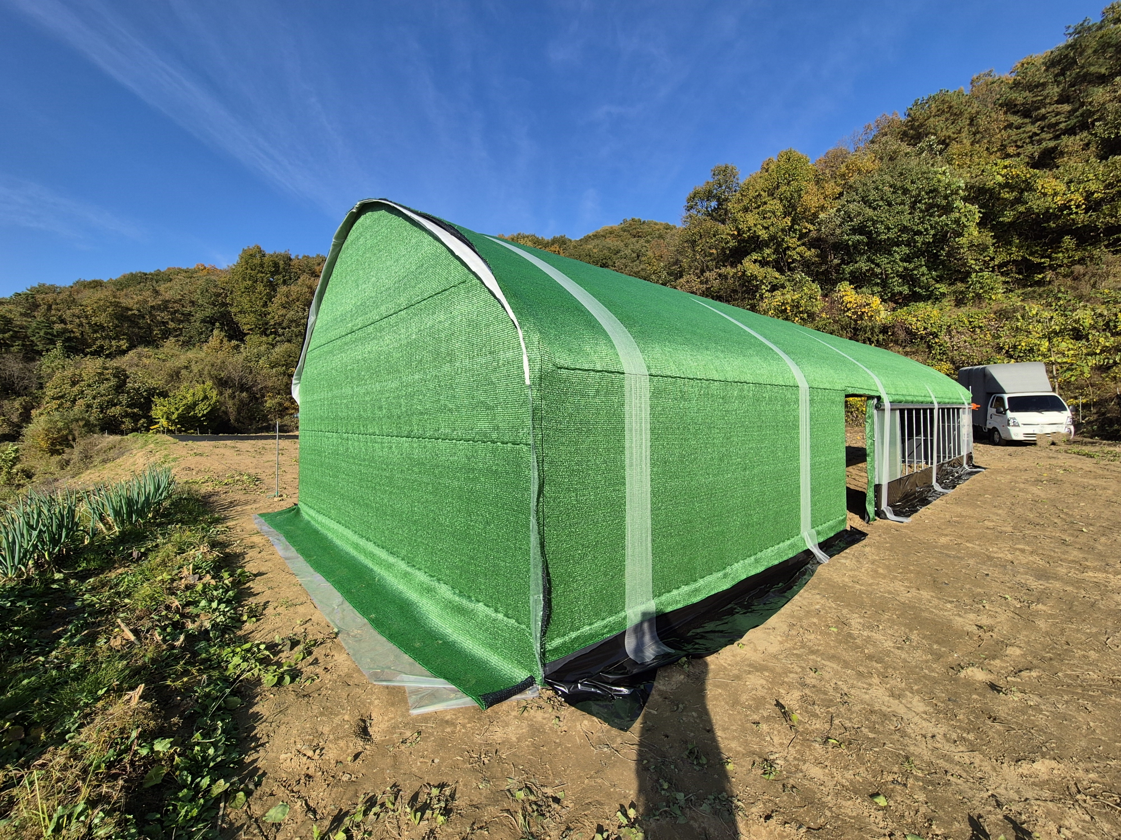 가장 바깥 외부에 초록색 98%차광막으로 마무리 해주었습니다.