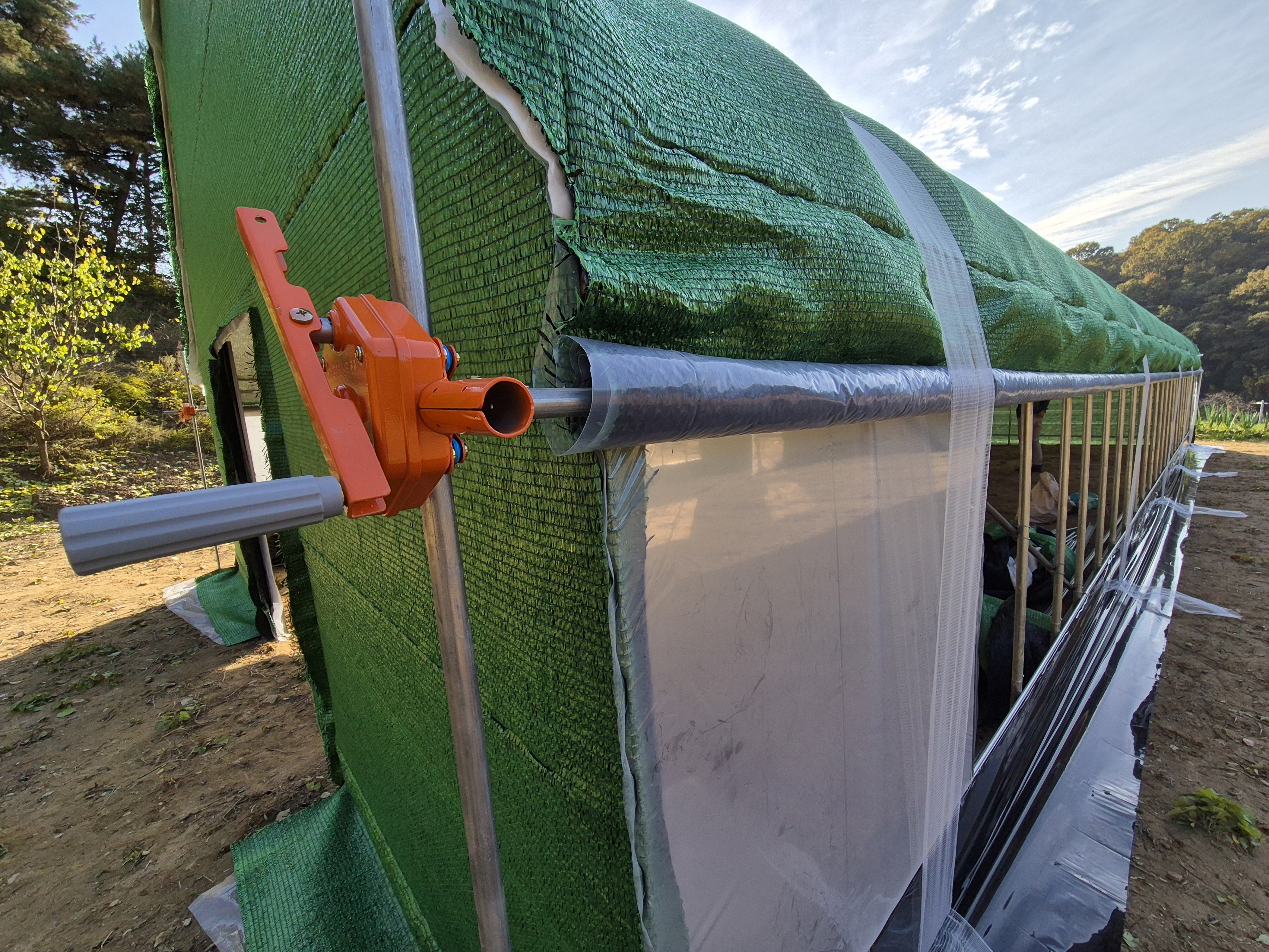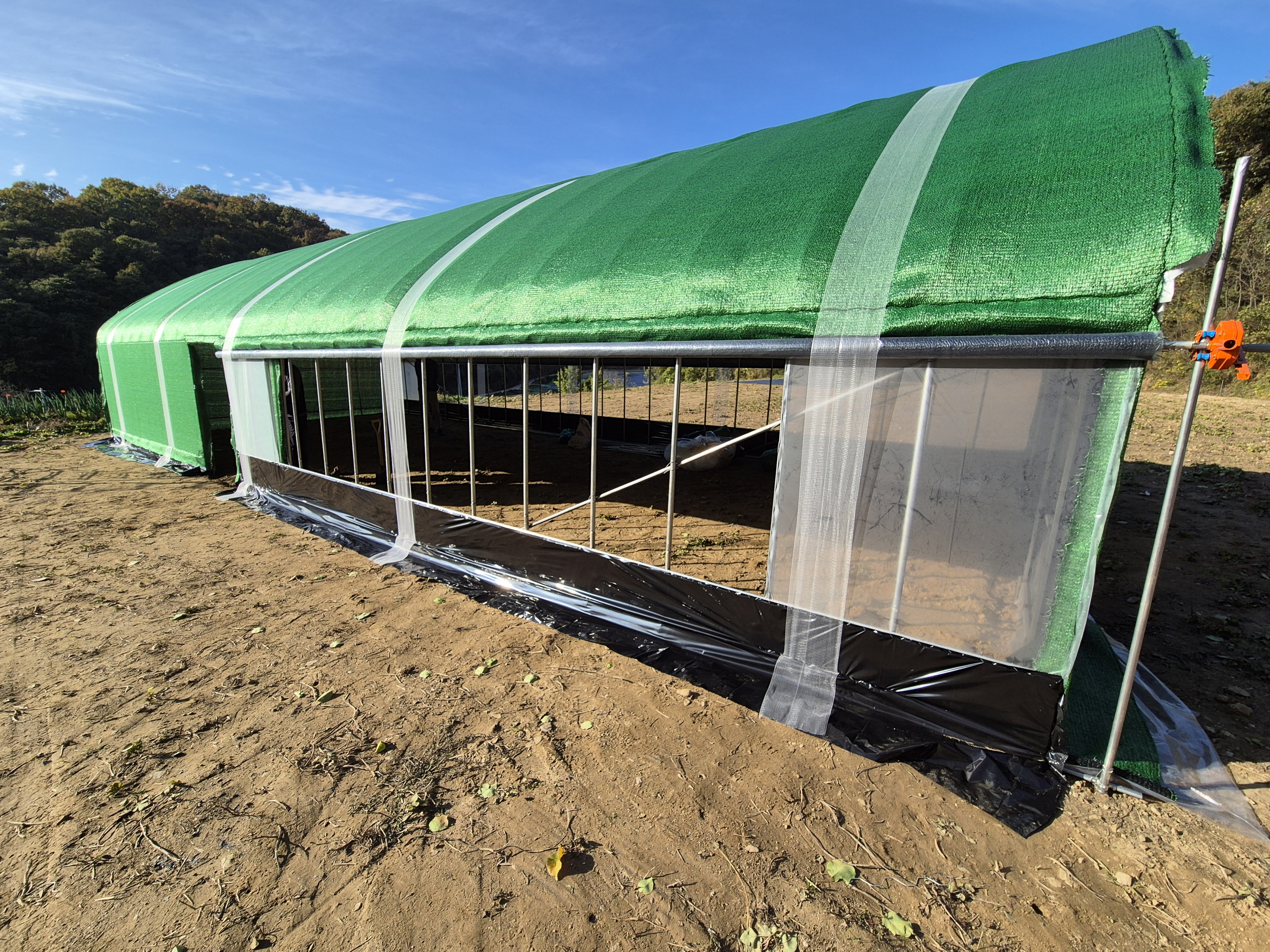 측면은 개폐를 위해 비닐+차광막 2겹의 구성입니다.