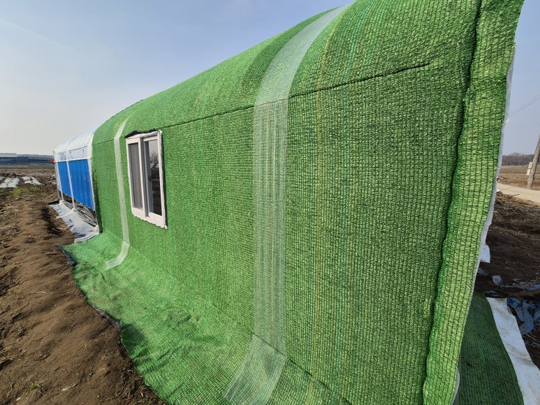 농막쪽에는 비닐+압축솜+비닐+차광막의 순서로