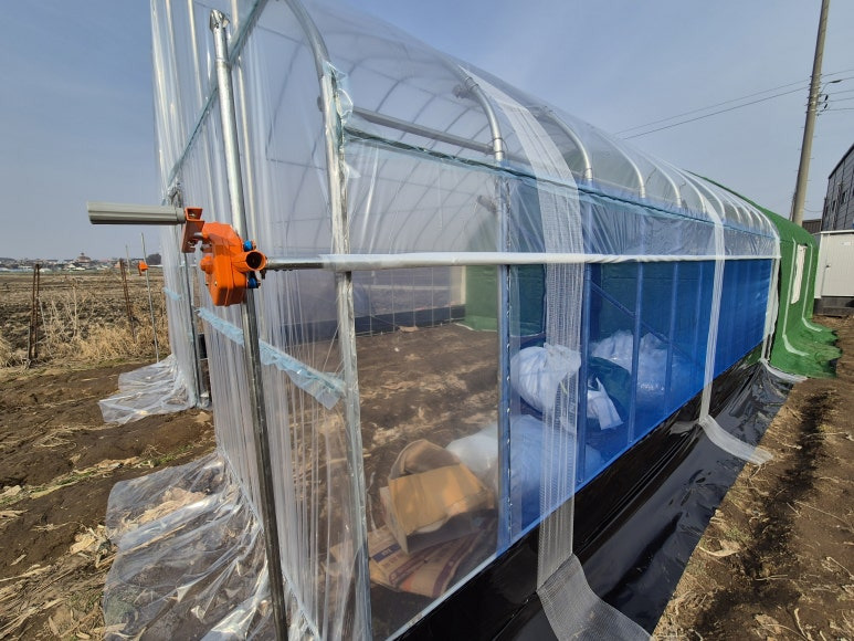 텃밭하우스 측면에는 검정색 치마비닐을 넣어주고