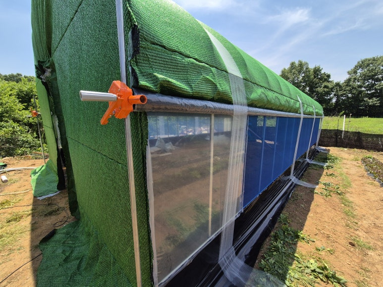 7줄을 설치하고 좌우 외부에 개폐기 파이프를 2줄 깔아주었습니다.