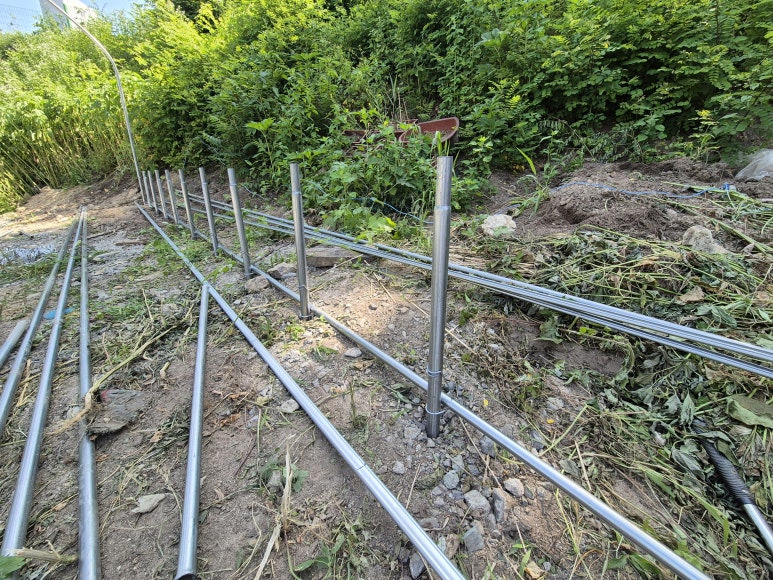 가로대를 25mm 파이프로 7줄 설치해주었습니다.