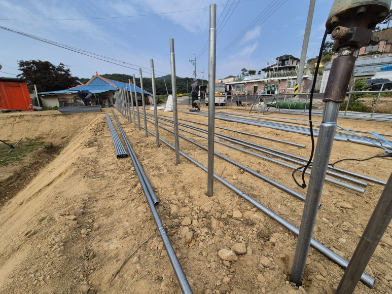 인발대 파이프는 땅속으로 50cm 가량 박히게 되며