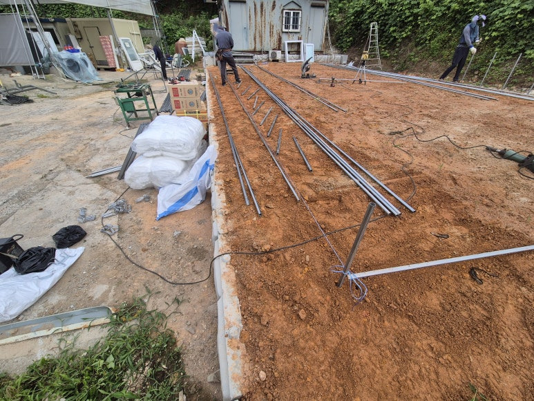자리를 잡아주고 인발대 파이프를 세워주었습니다.