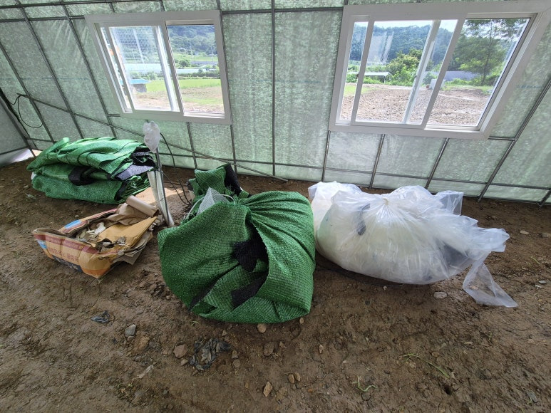 텃밭쪽은 비닐 1겹, 농막쪽은 4겹의 구성입니다.