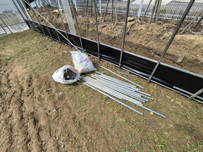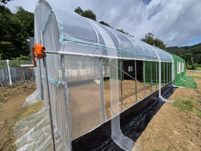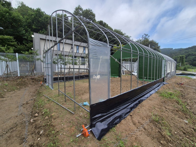 텃밭 하우스 측면에는 검정색 치마비닐과