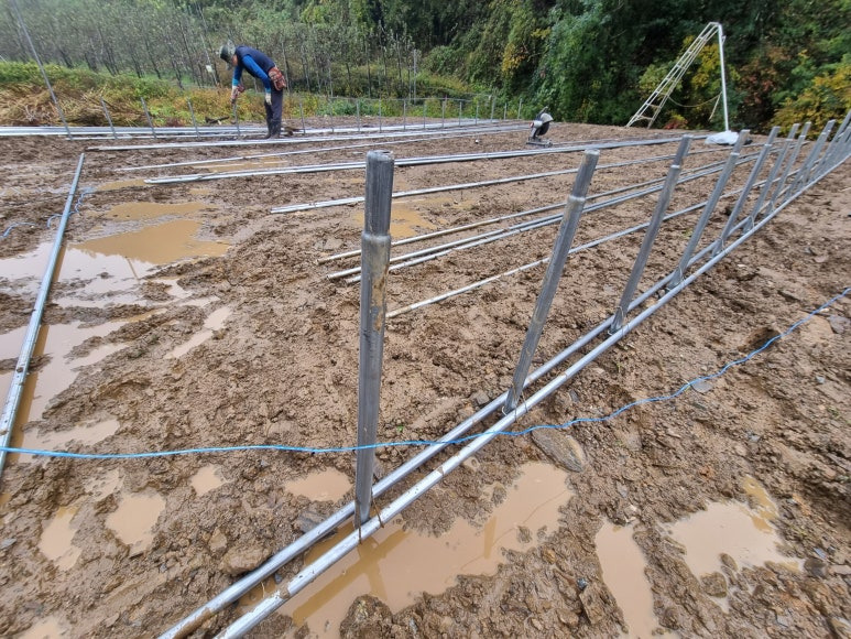 앞뒤 좌우 수평을 잡고 땅속으로 40~50cm 가량 박히게 됩니다.