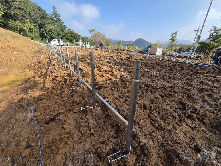 길이쪽은 땅 경사진 모양대로 인발대를 설치해주었습니다.