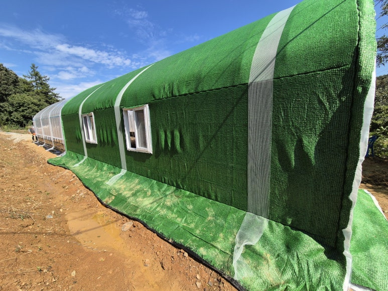 검정색 치마비닐과 바람막이 비닐을 설치해주었습니다.