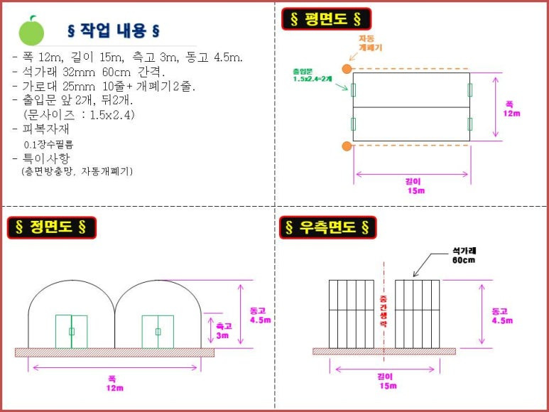 하우스 높이를 높게 시공 가능한 구조 입니다.
